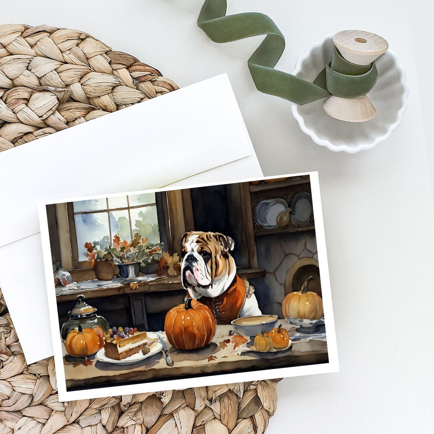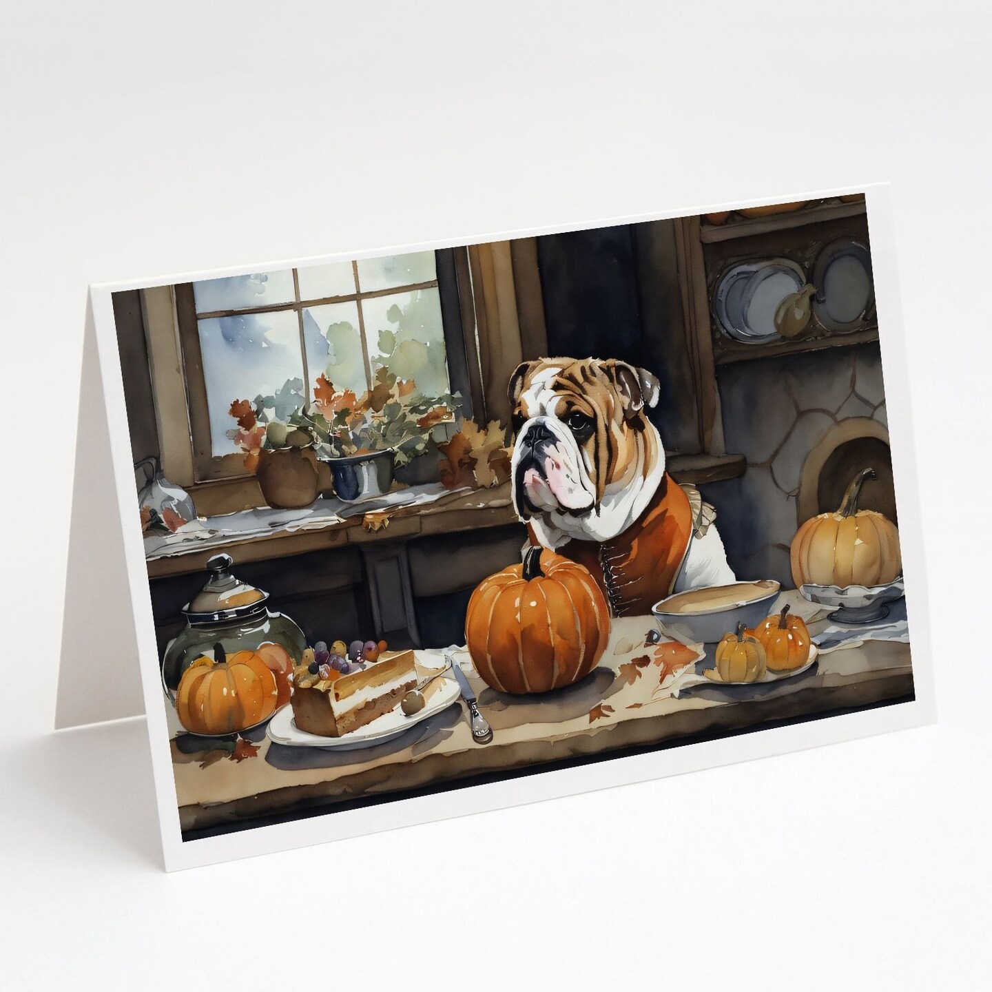 Edge Collections - 5" x 7" - Multicolor - English Bulldog Fall Kitchen Pumpkins Greeting Cards with Envelopes - 8 Pieces