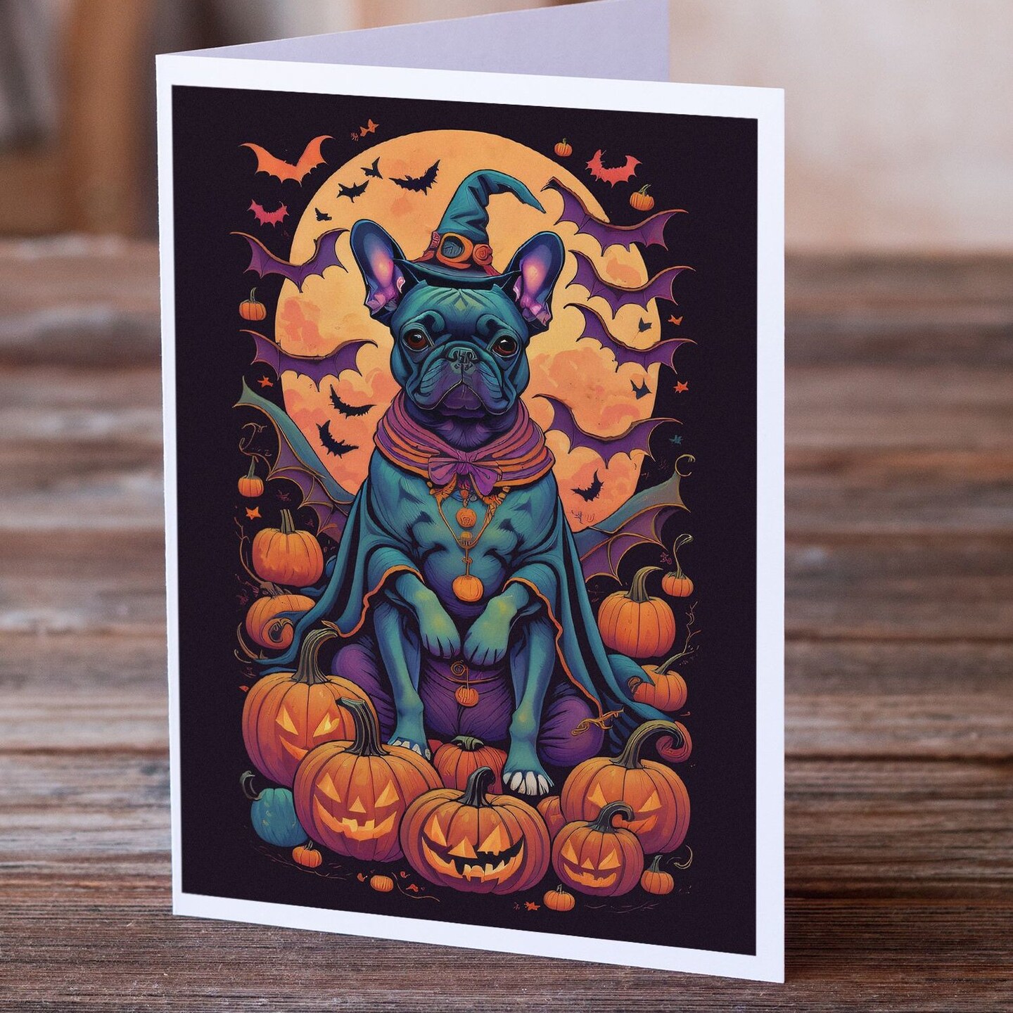 Edge Collections - 5" x 7" - Multicolor - French Bulldog Witchy Halloween Greeting Cards - 8 Pieces