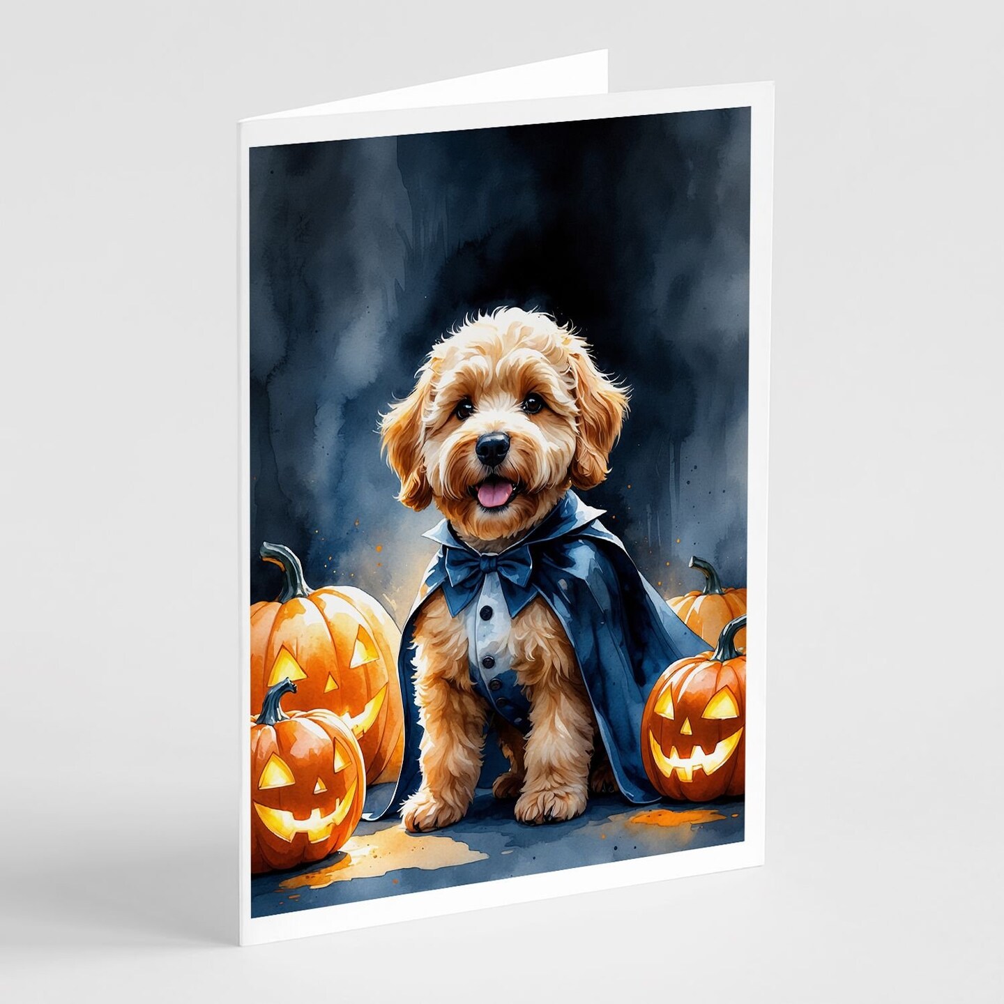 Edge Collections - 5" x 7" - Multicolor - Goldendoodle Puppy Halloween Greeting Cards - 8 Pieces