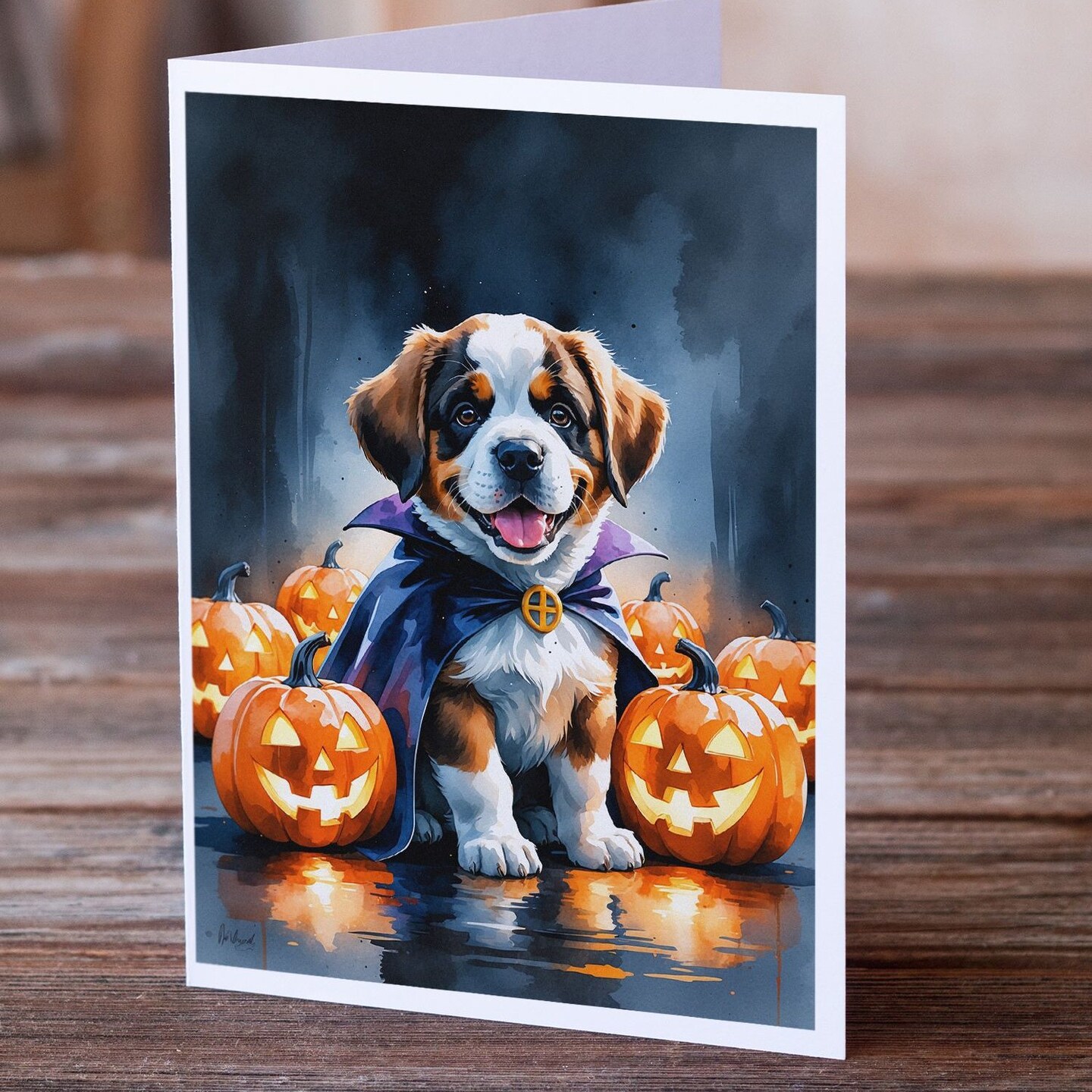 Edge Collections - 5" x 7" - Multicolor - Saint Bernard Puppy Halloween Greeting Cards - 8 Pieces