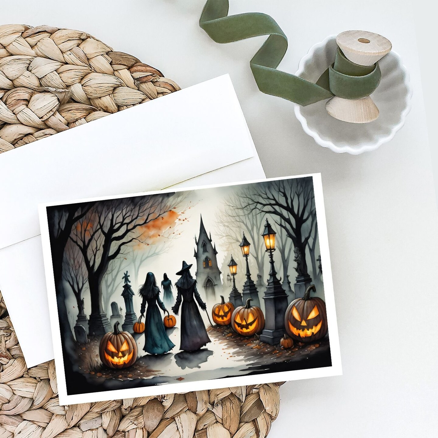 Edge Collections - 5" x 7" - Multicolor - Vampires Spooky Halloween Greeting Cards - 8 Pieces