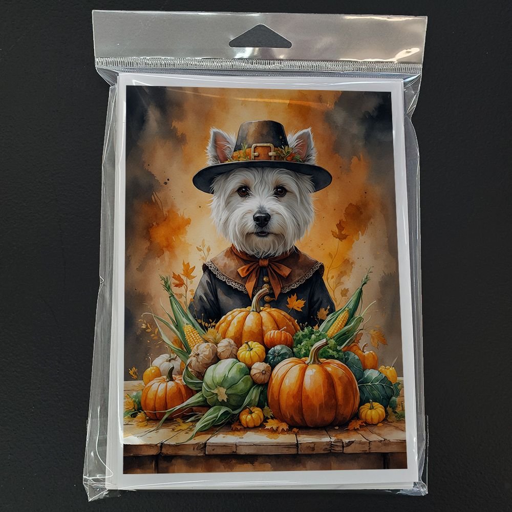 Edge Collections - 5" x 7" - Orange - Thanksgiving Greeting Cards West Highland Terrier Blank Cards with Envelopes - 8 Pieces