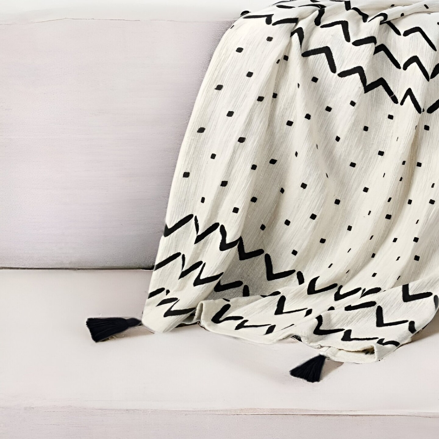 Edge Collections - 50" x 60" - Black - Classic Chevron Throw Blanket with Tassels for Timeless Elegance - 1 Piece
