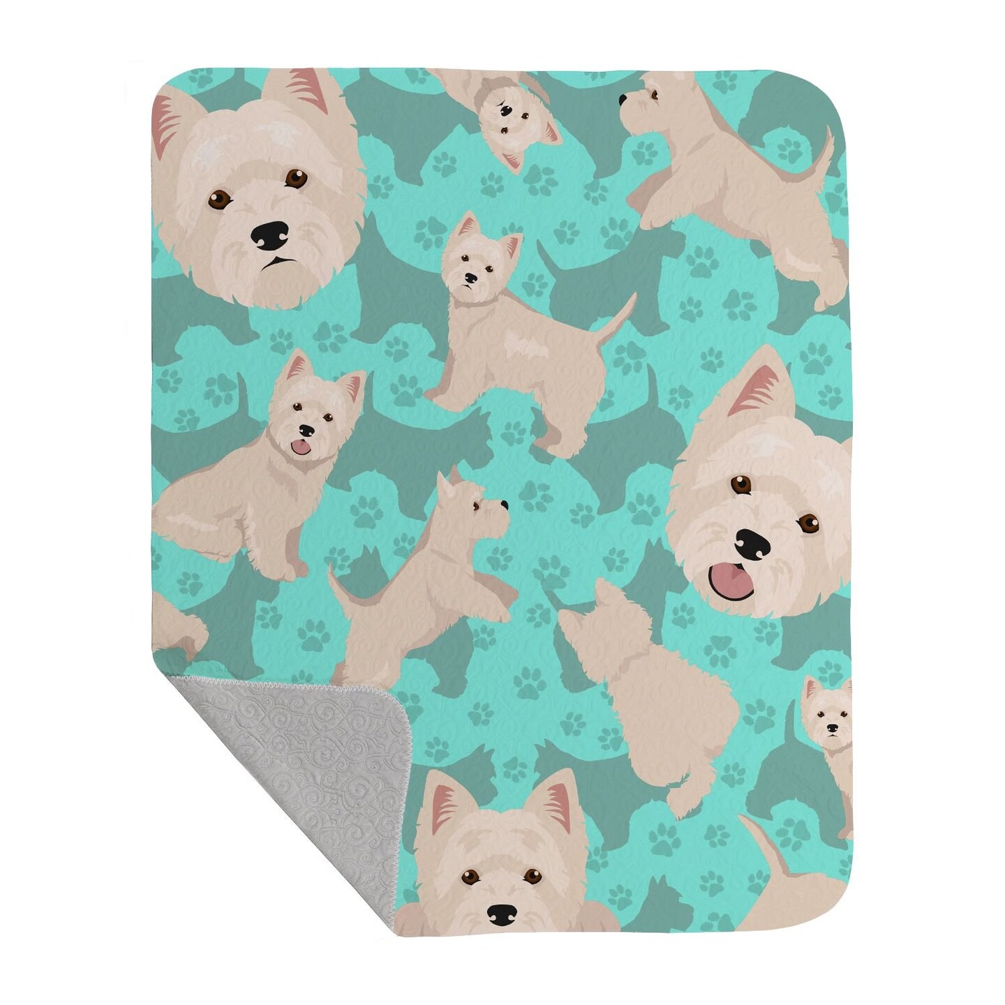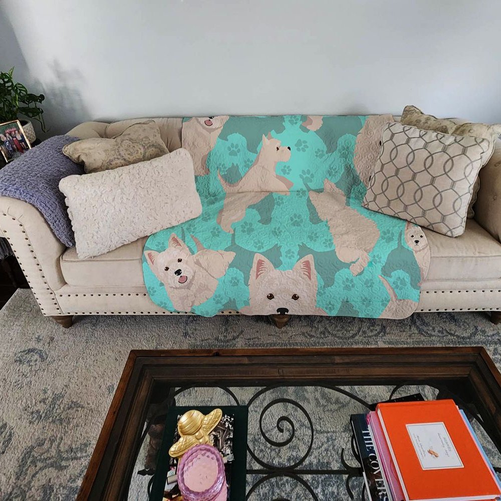 Edge Collections - 50" x 60" - Cream & Teal - Westie Artwork Pattern Quilted Throw Blanket - 1 Piece