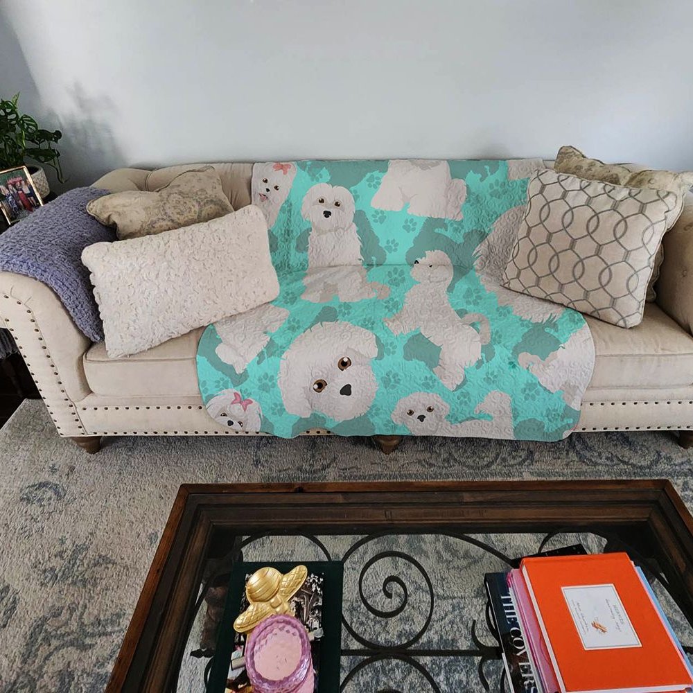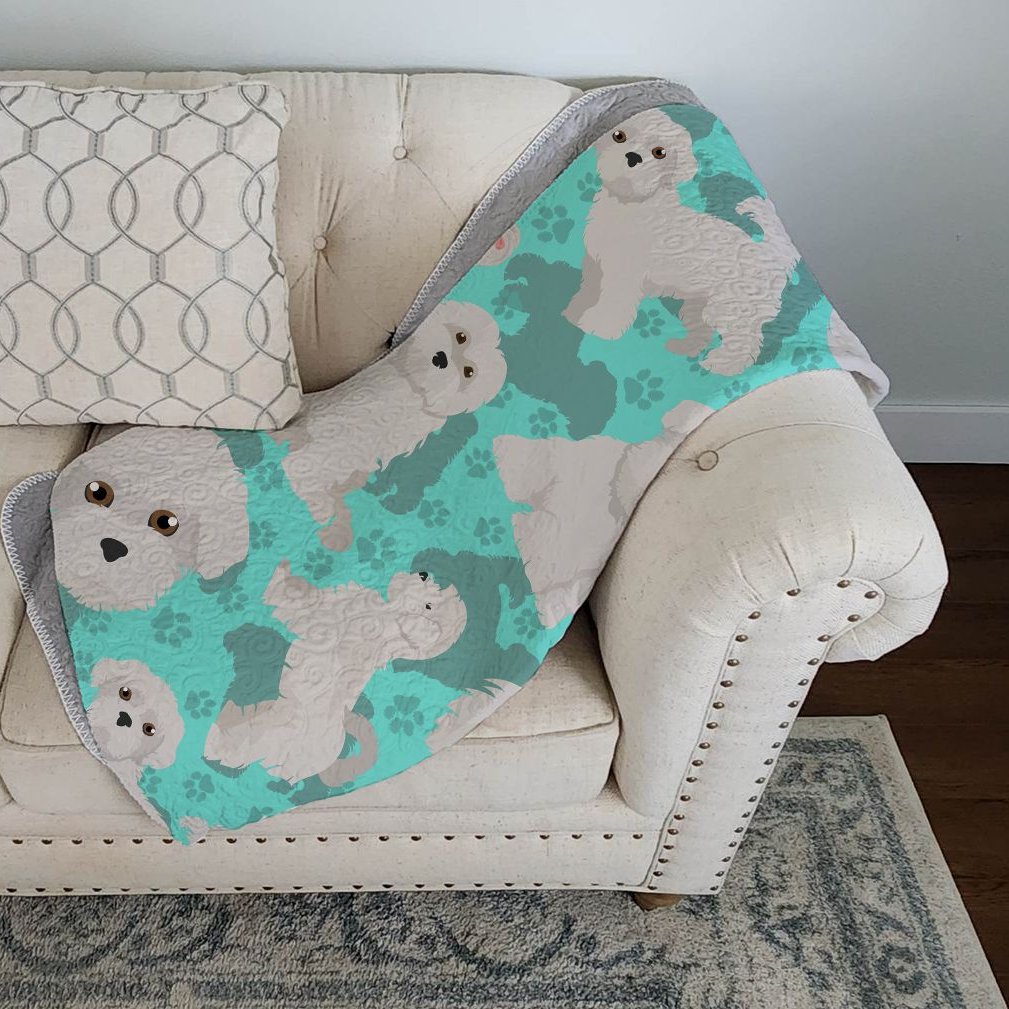 Edge Collections - 50" x 60" - Gray & Teal - Maltese Artwork Pattern Quilted Throw Blanket - 1 Piece