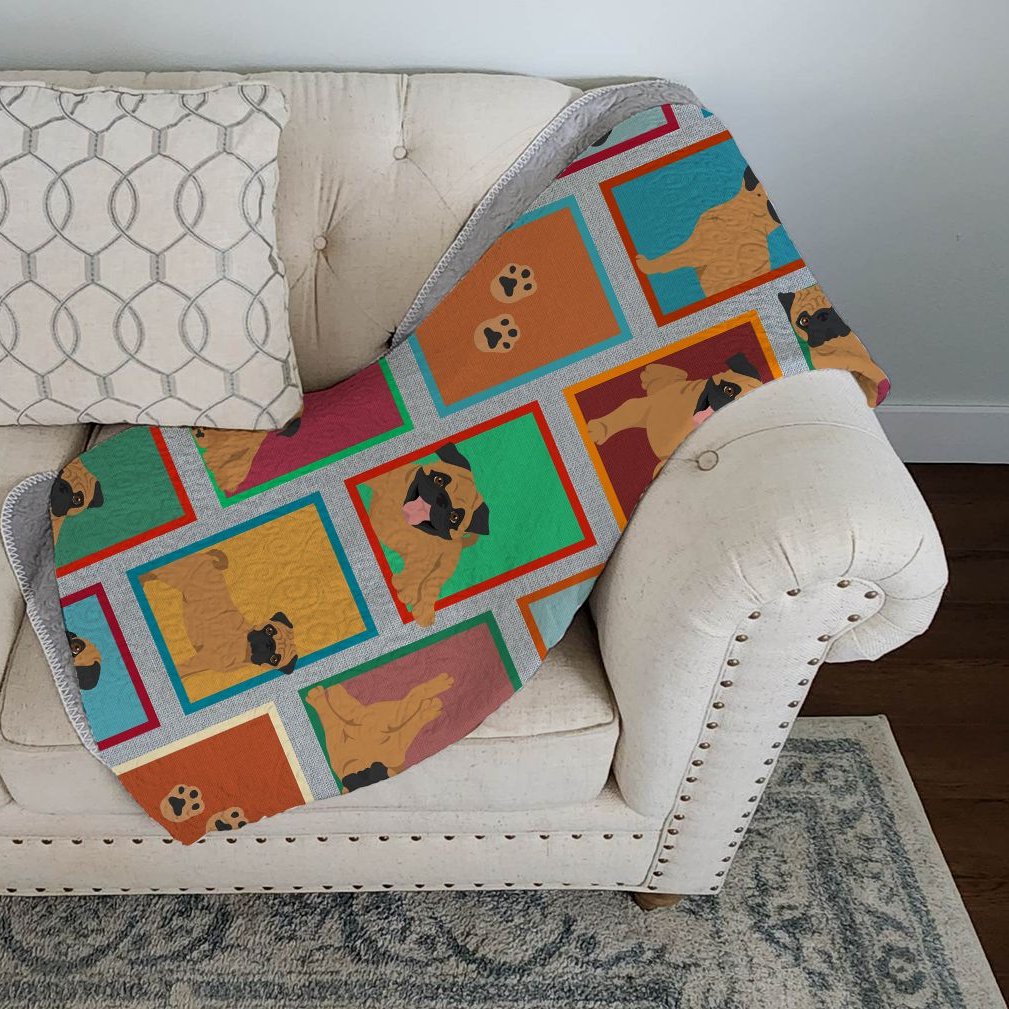 Edge Collections - 50" x 60" - Multicolor - Apricot Pug Quilted Blanket Throw - 1 Piece