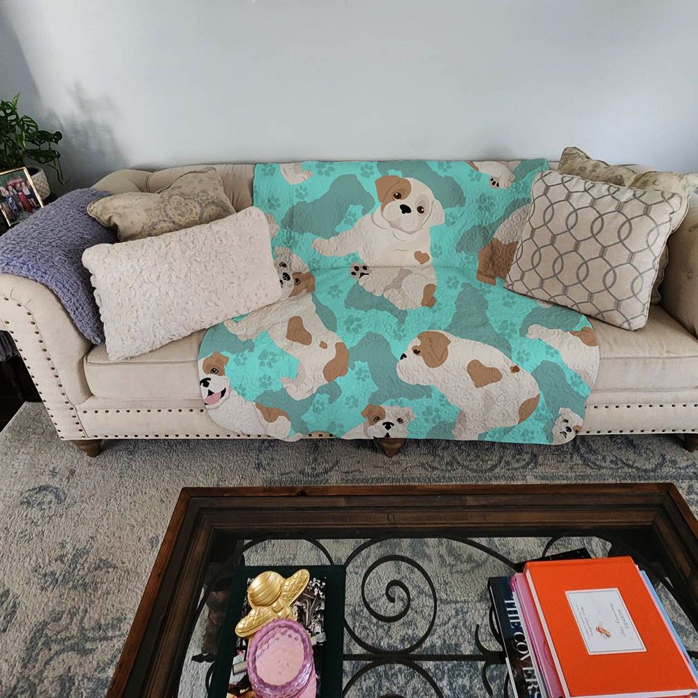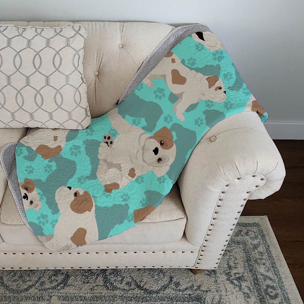 Edge Collections - 50" x 60" - Multicolor - Piebald English Bulldog Quilted Throw Blanket - 1 Piece