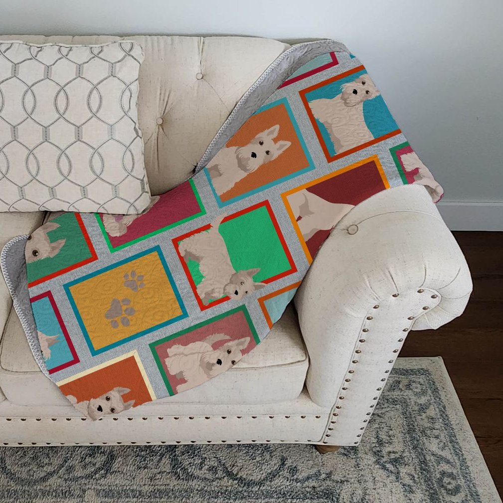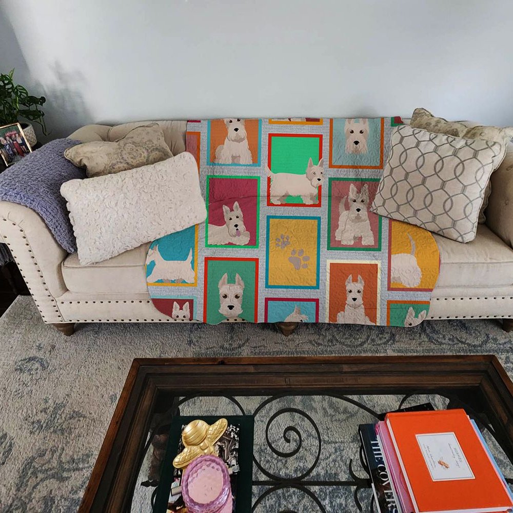 Edge Collections - 50" x 60" - Multicolor - Quilted Blanket Wheat Scottish Terrier Artwork - 1 Piece