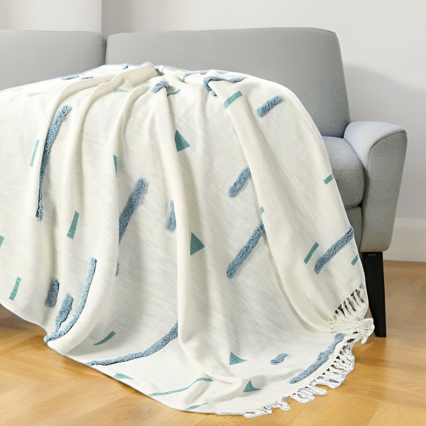 Edge Collections - 50" x 60" - White - Embroidered Geometric Throw Blanket for Stylish Living Spaces - 1 Piece