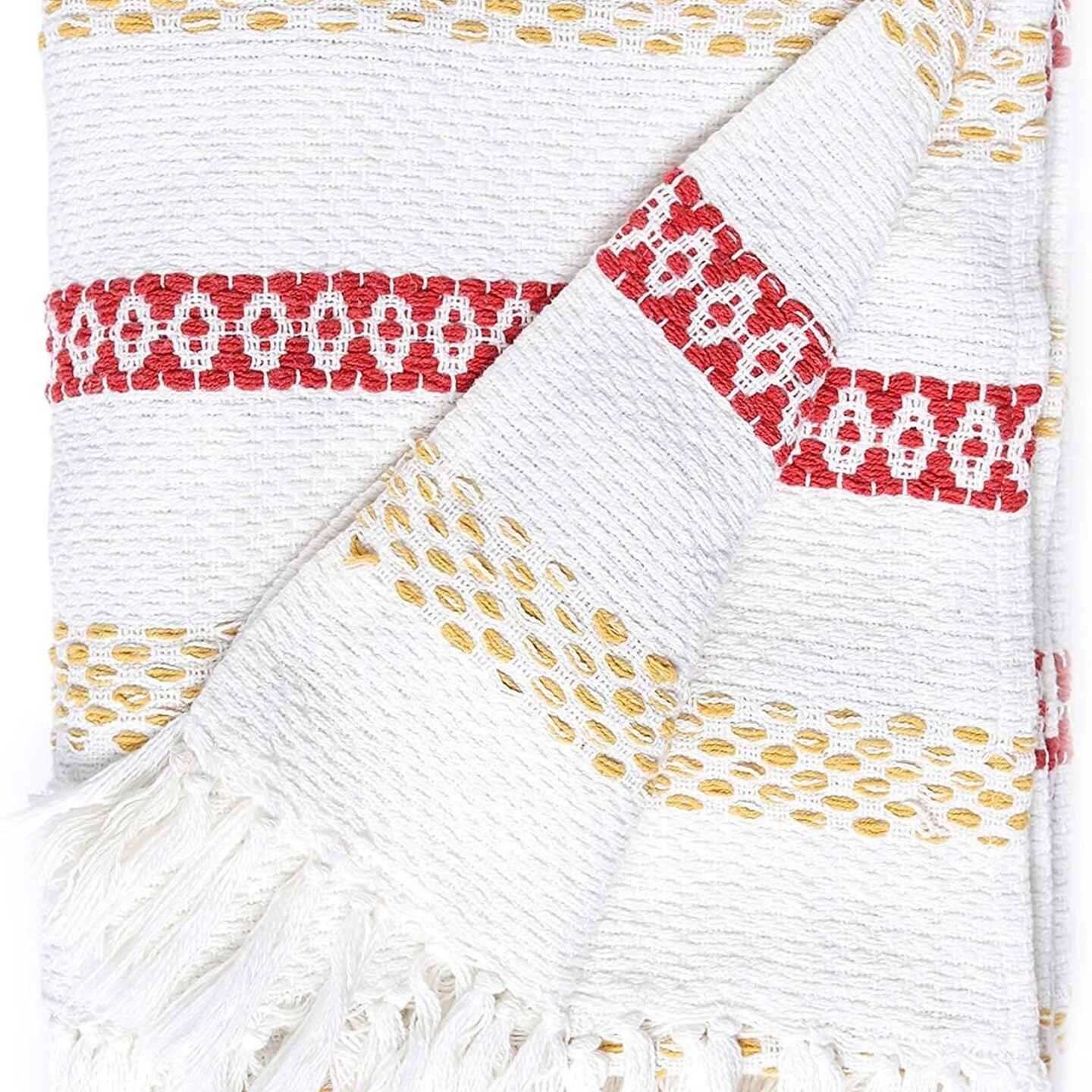 Edge Collections - 50" x 60" - White - Soft Cotton Throw Blanket for Stylish Home Interiors - 1 Piece