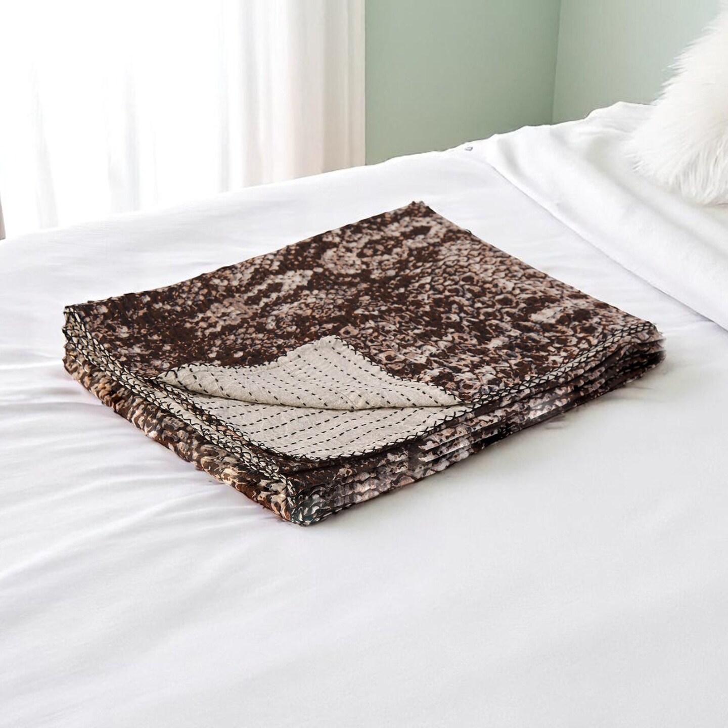 Edge Collections - 50" x 70" - Brown - Artisanal Kantha Throw Blanket with Floral Embroidery - 1 Piece