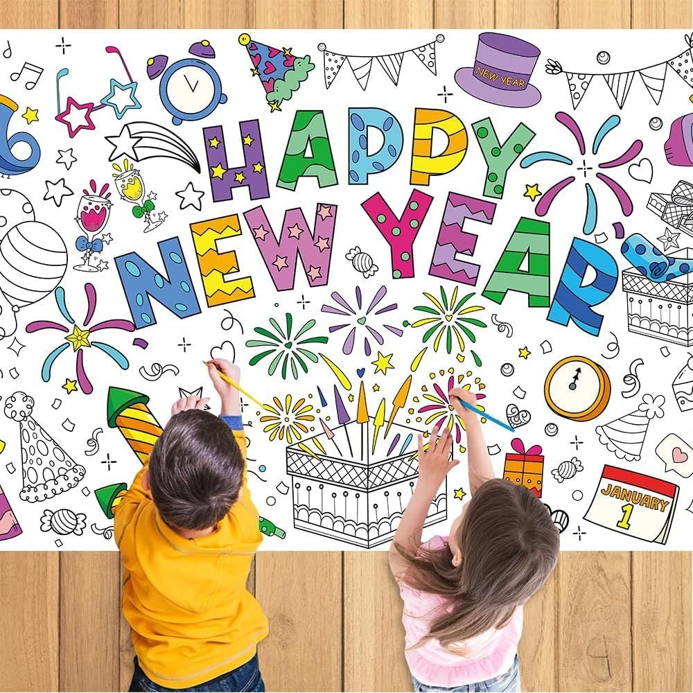 Edge Collections -51" x 30"-Multi-DIY Happy New Year Coloring Tablecloth-1 pcs