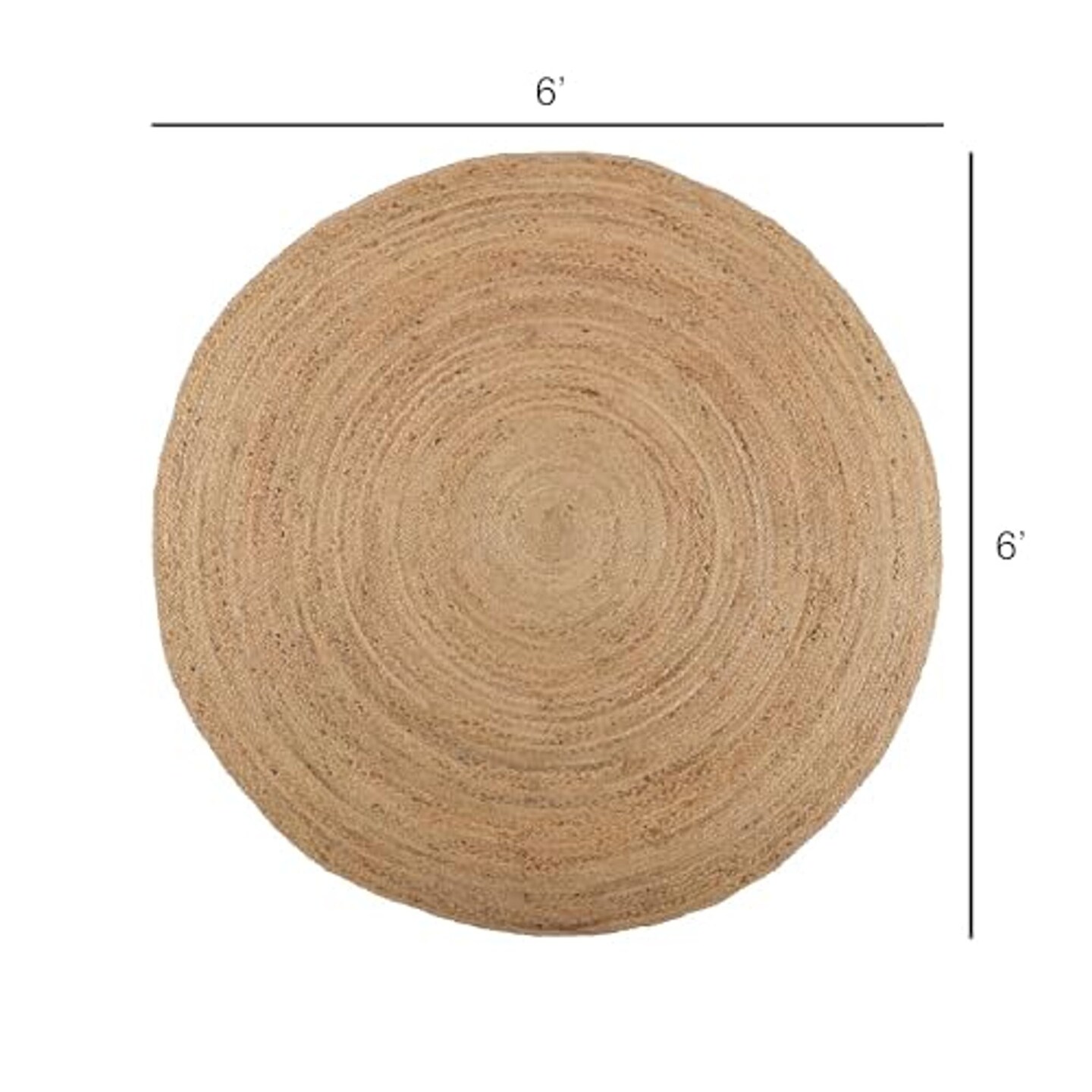 Edge Collections - 6' - Natural - Handwoven Natural Jute Round Rug for Rustic Home Decor - 1 Piece