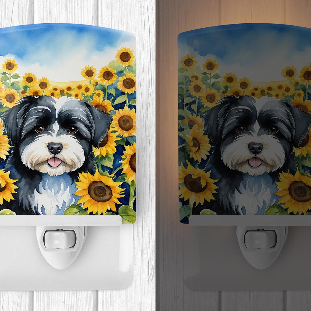 Edge Collections - 6" x 4" - Multicolor - Sunflowers Ceramic Night Light for Nursery Hallway - 1 Piece