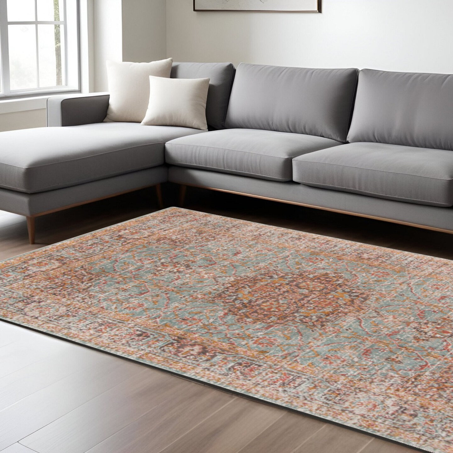 Edge Collections - 7' X 9' - Multicolor - Artistic Medallion Area Rug for Home Decor - 1 Piece