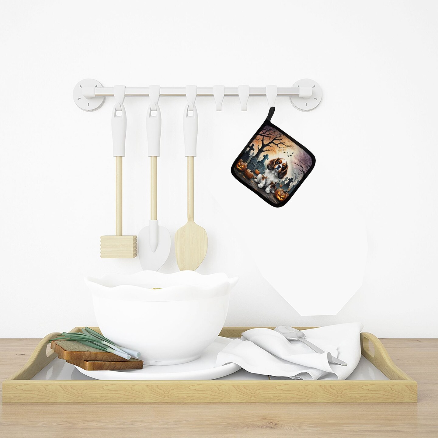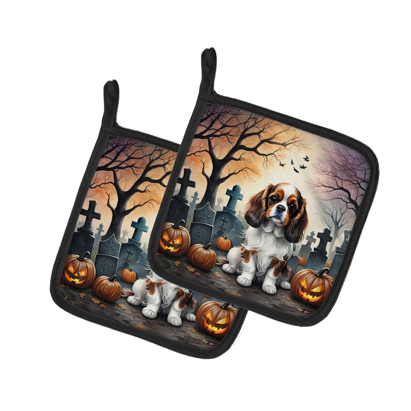 Edge Collections - 7.5" x 7.5" - Multicolor - Cavalier Spaniel Halloween Decorative Pot Holders - 1 Pair