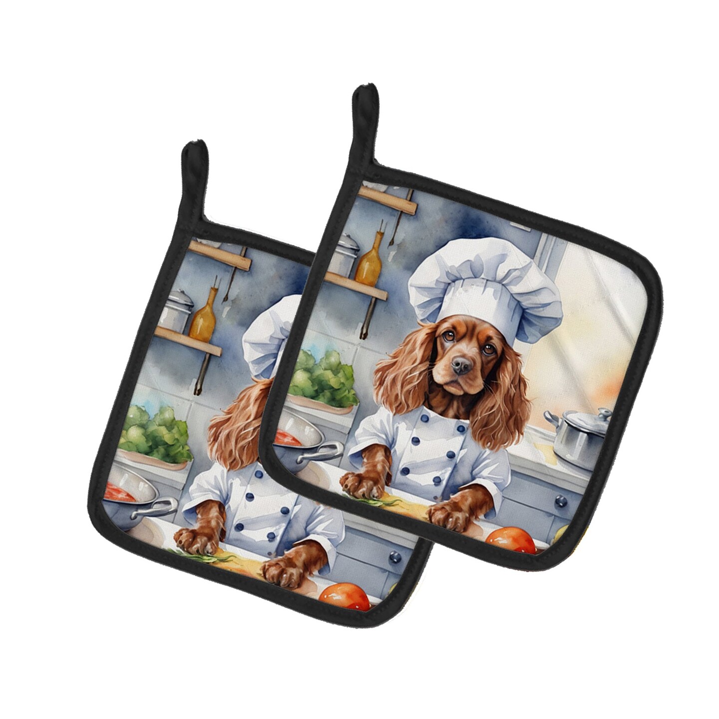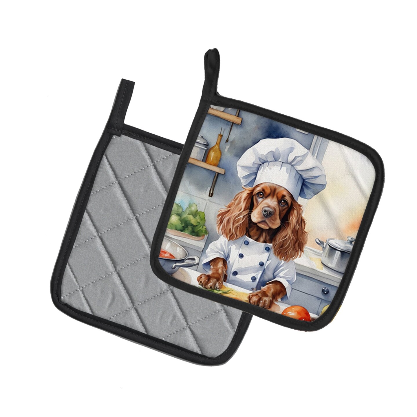 Edge Collections - 7.5" x 7.5" - Multicolor - The Dog Chef Themed Pair of Pot Holders - 2 Piece