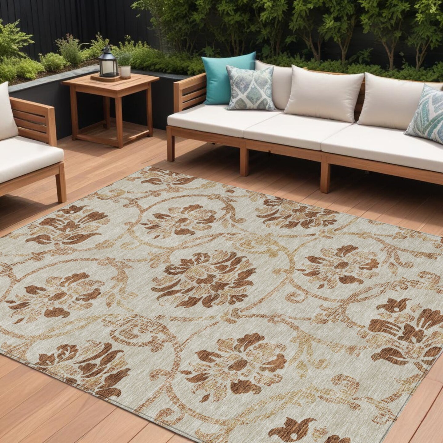 Edge Collections - 8' x 10' - Brown - Floral Area Rug Washable Indoor and Outdoor Use - 1 Piece