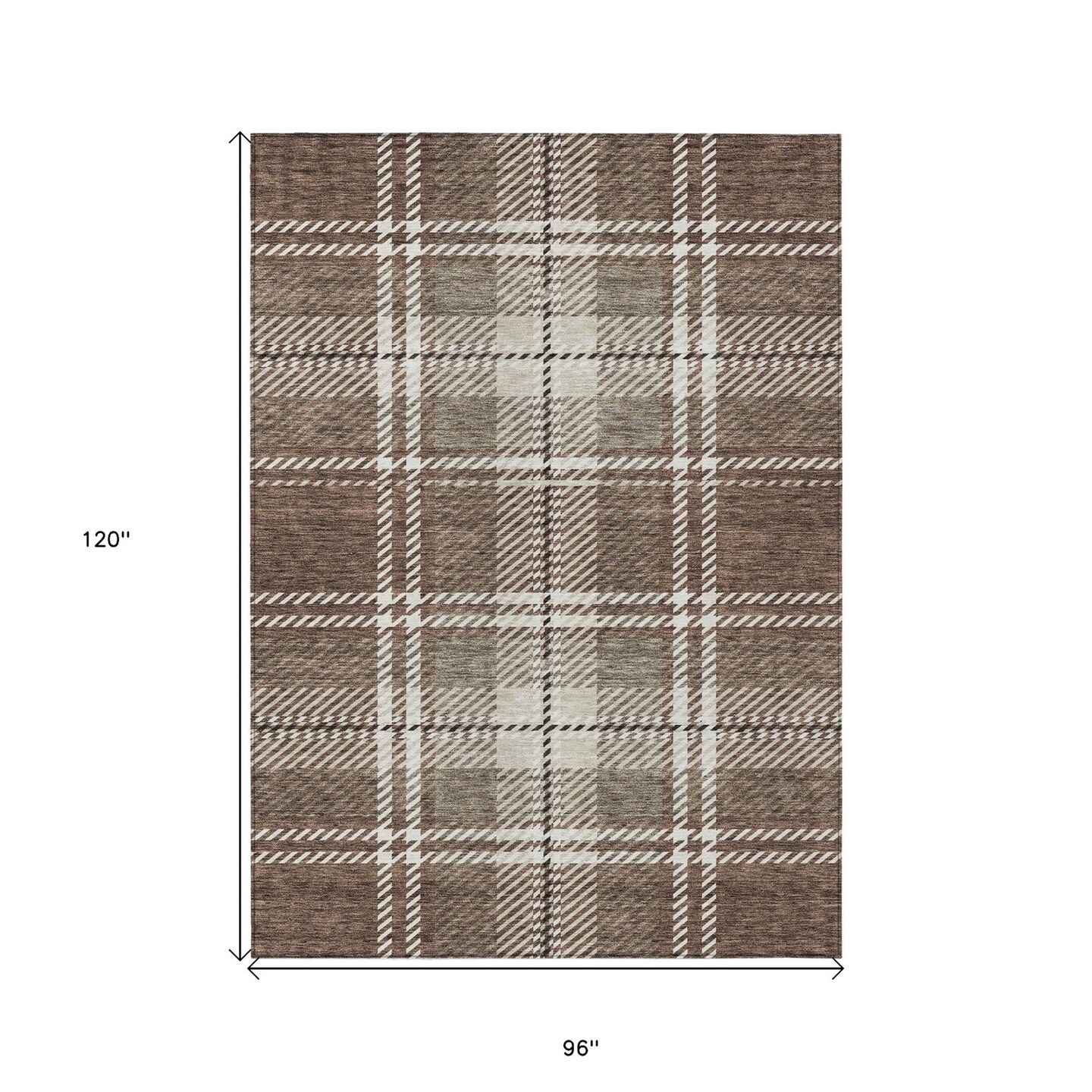 Edge Collections - 8' x 10' - Brown - Plaid Washable Area Rug for Indoor and Outdoor Use - 1 Piece