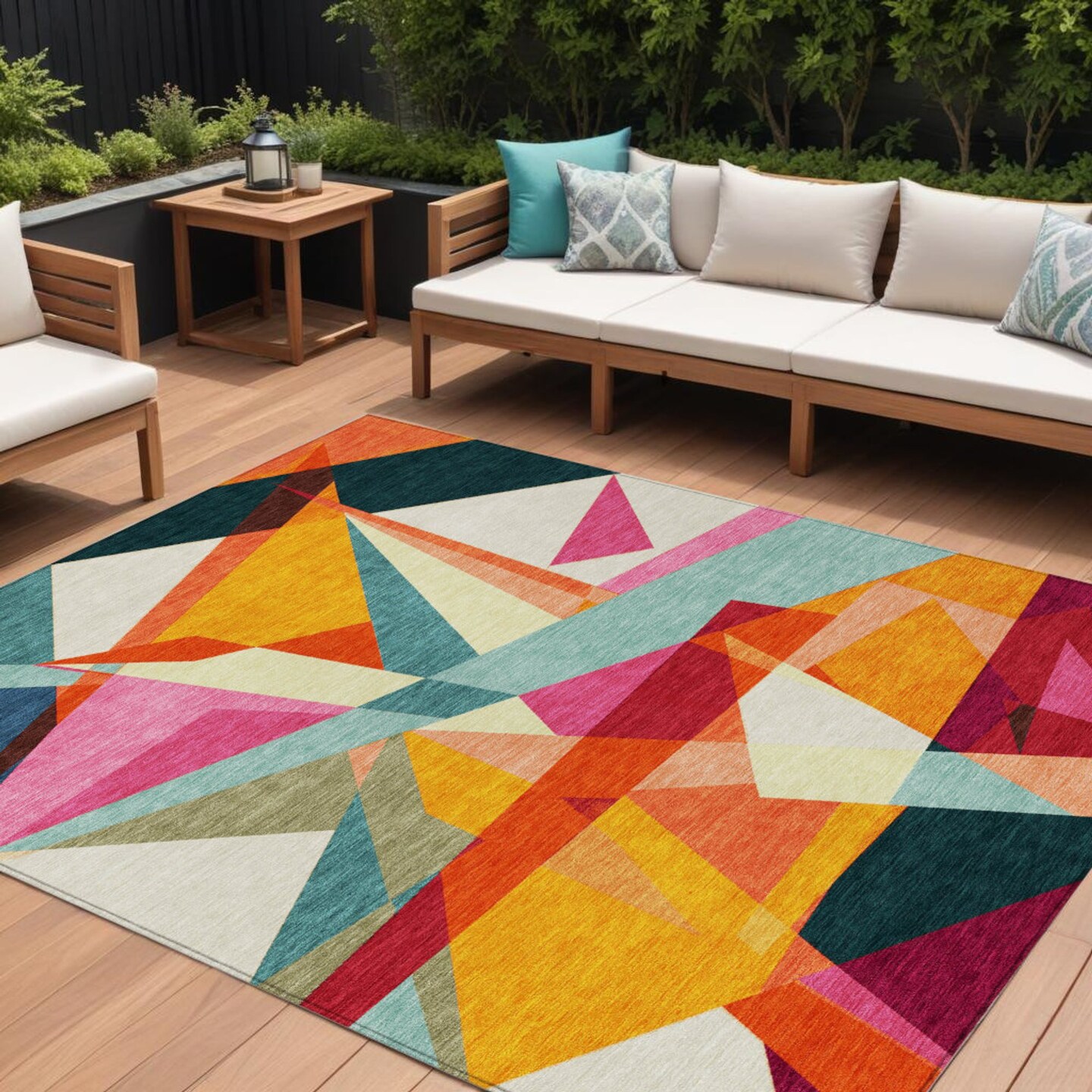 Edge Collections - 8' x 10' - Multicolor - Indoor and Outdoor Use Geometric Area Rug for Washable - 1 Piece