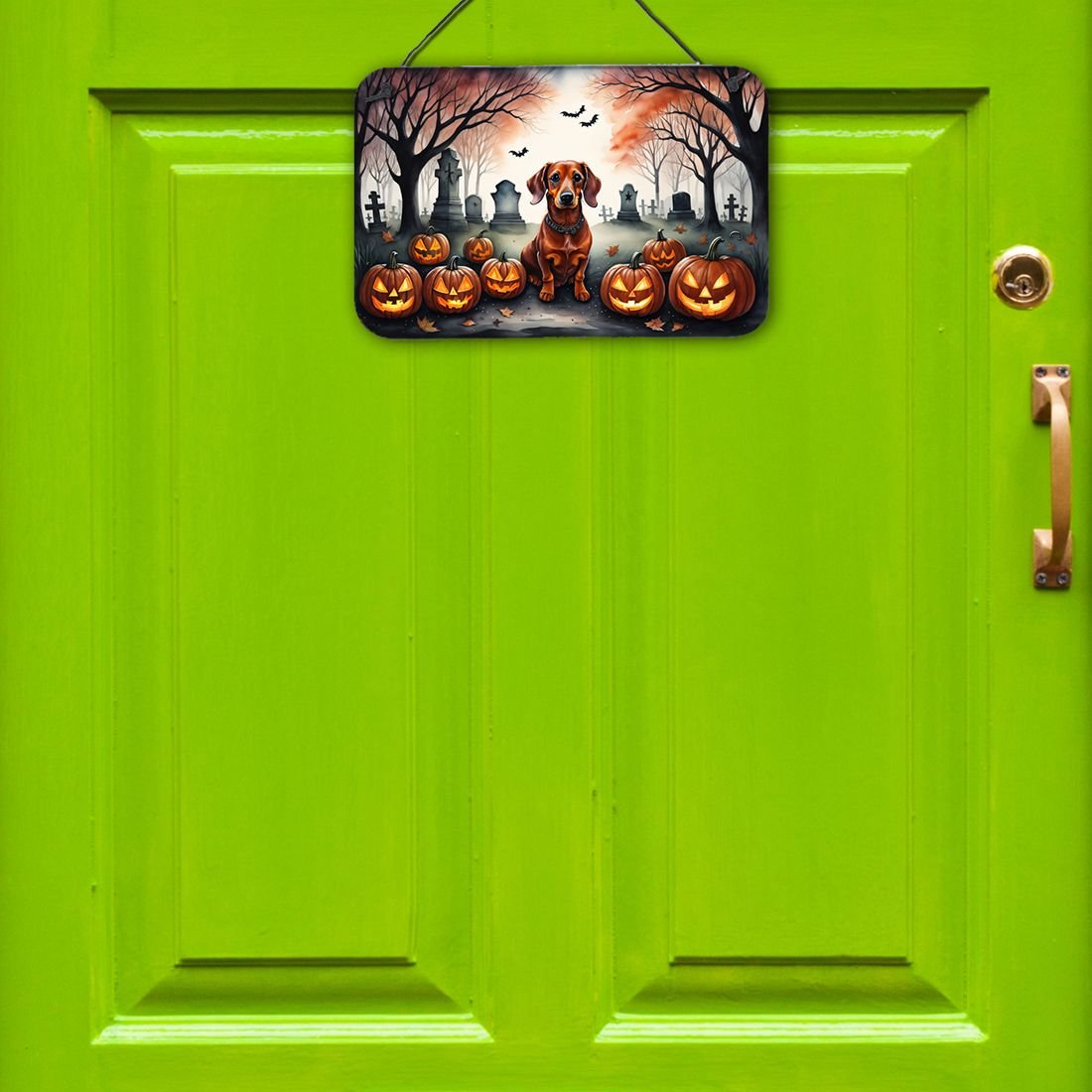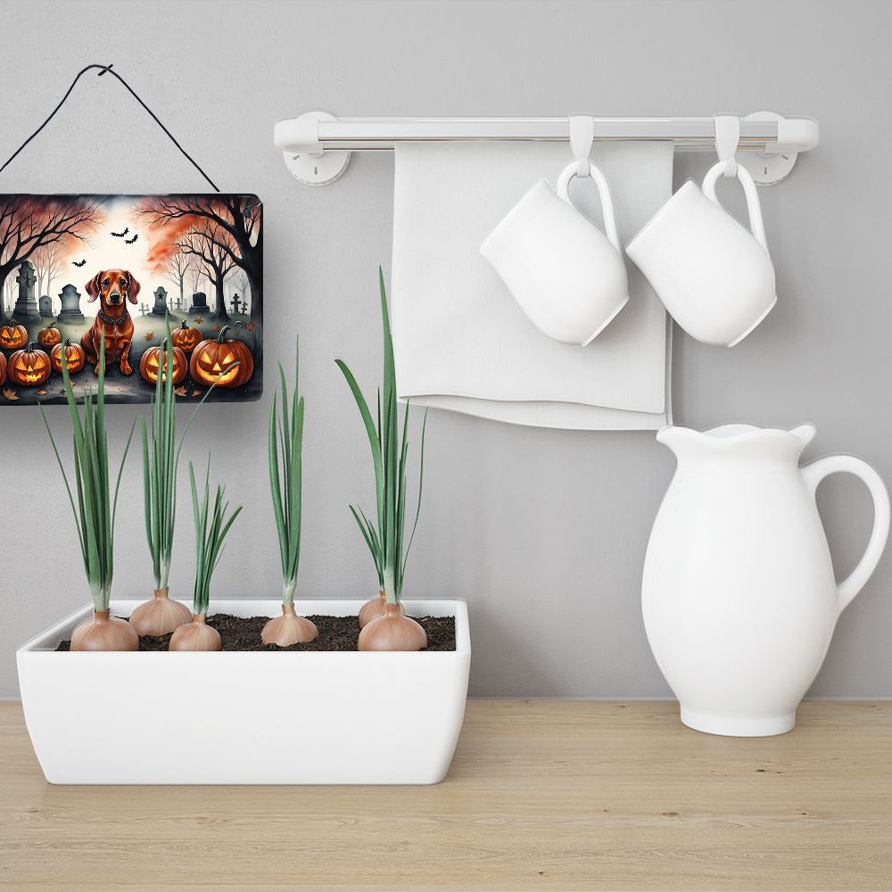 Edge Collections - 8" x 12" - Multicolor - Dachshund Spooky Halloween Wall or Door Hanging Prints Aluminum Metal Sign - 1 Piece