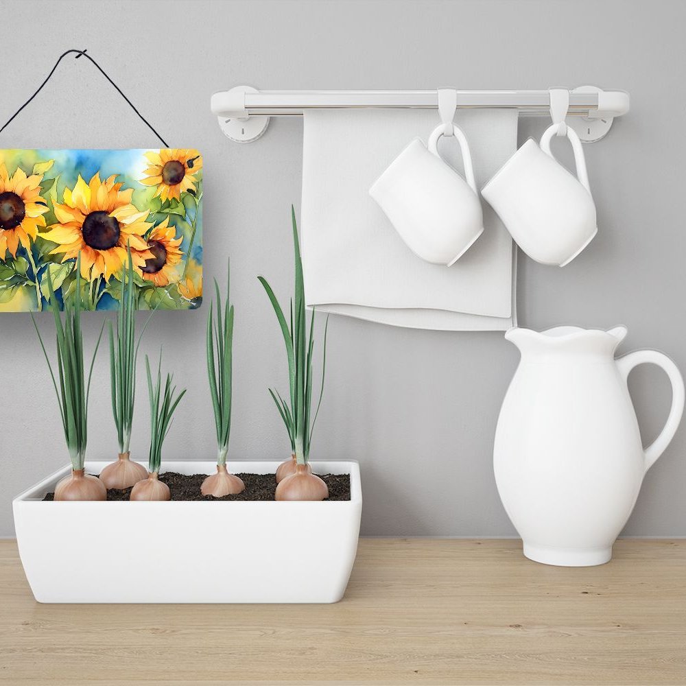 Edge Collections - 8" x 12" - Multicolor - Sunflowers Door Hanging Aluminum Print - 1 Piece