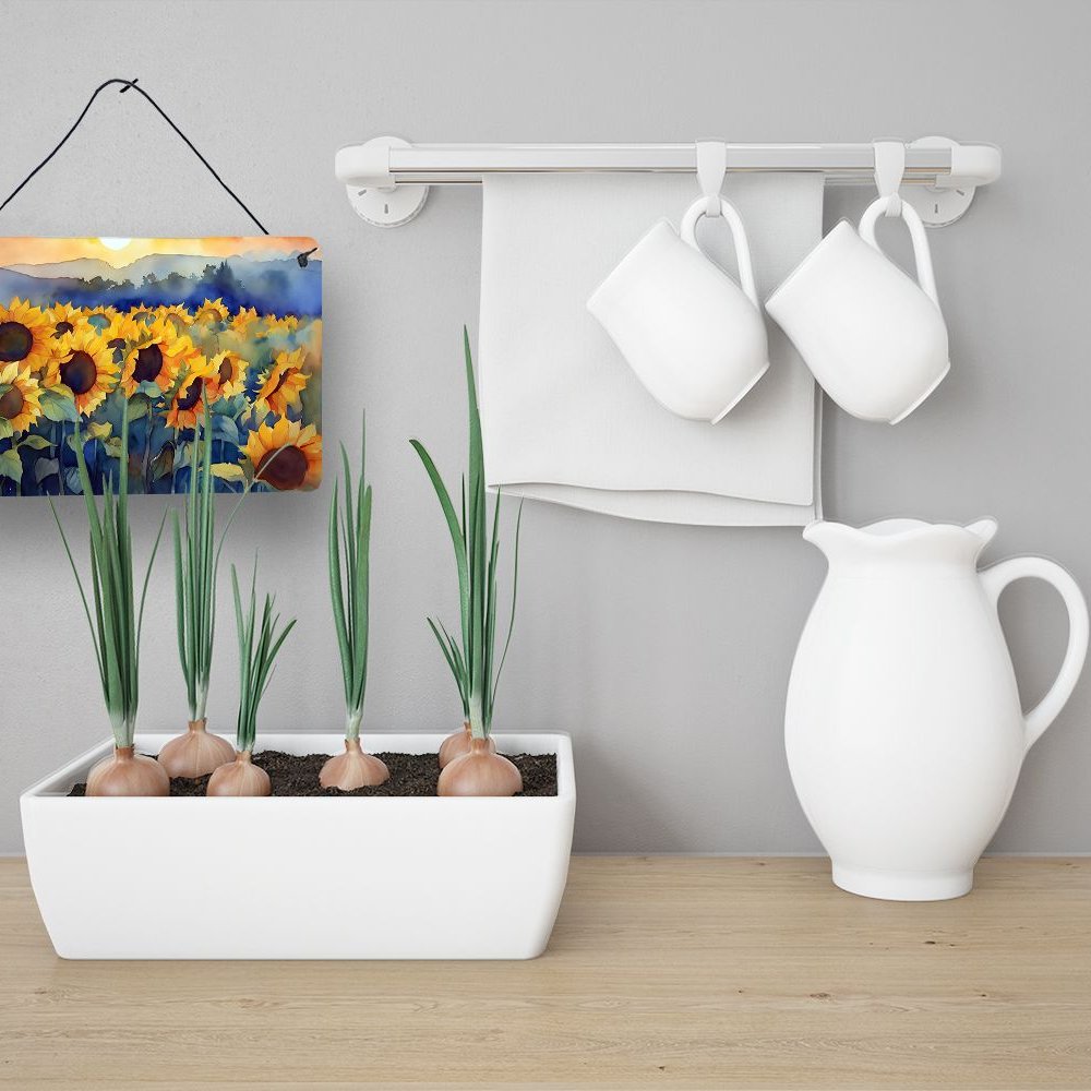 Edge Collections - 8" x 12" - Multicolor - Sunflowers Watercolor Aluminum Metal Sign Wall or Door Hanging Print - 1 Piece