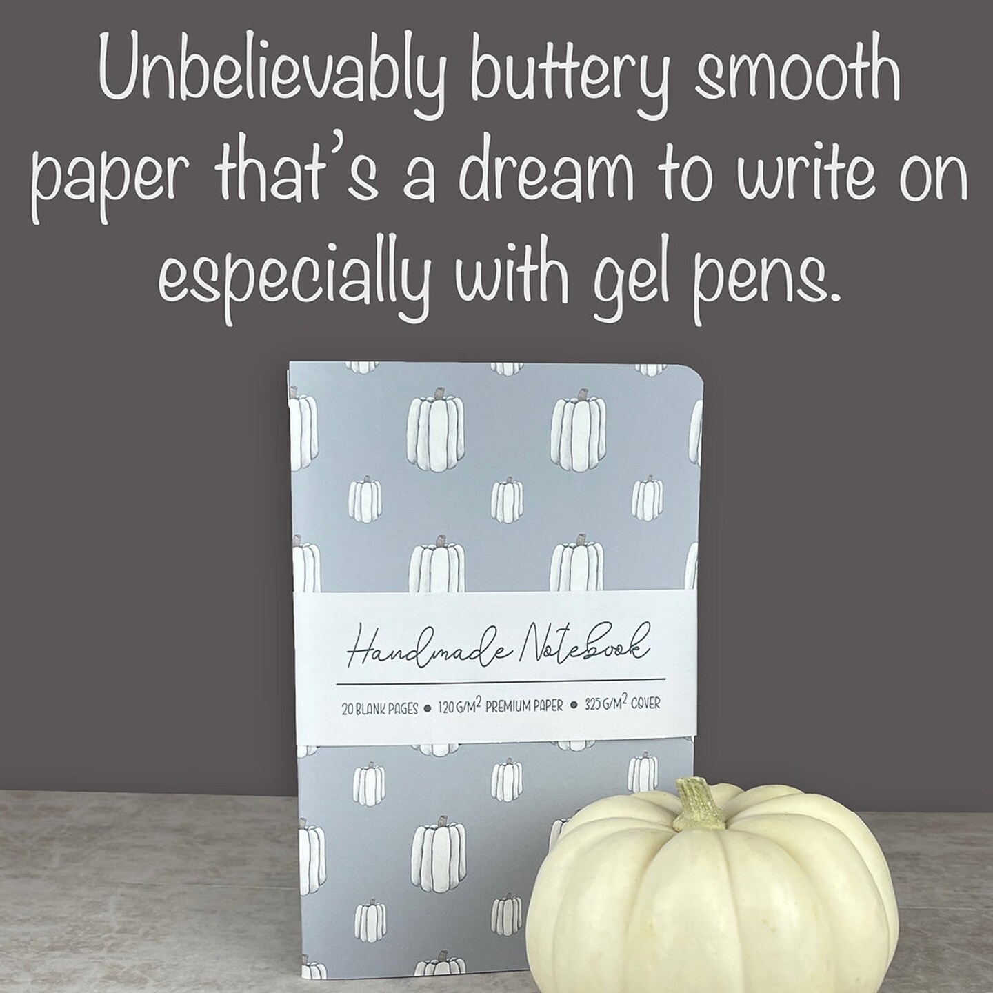 Edge Collections - 8" x 5.25" - Light Blue & White - Elegant White Pumpkin Patterned Notebook - 1 Piece