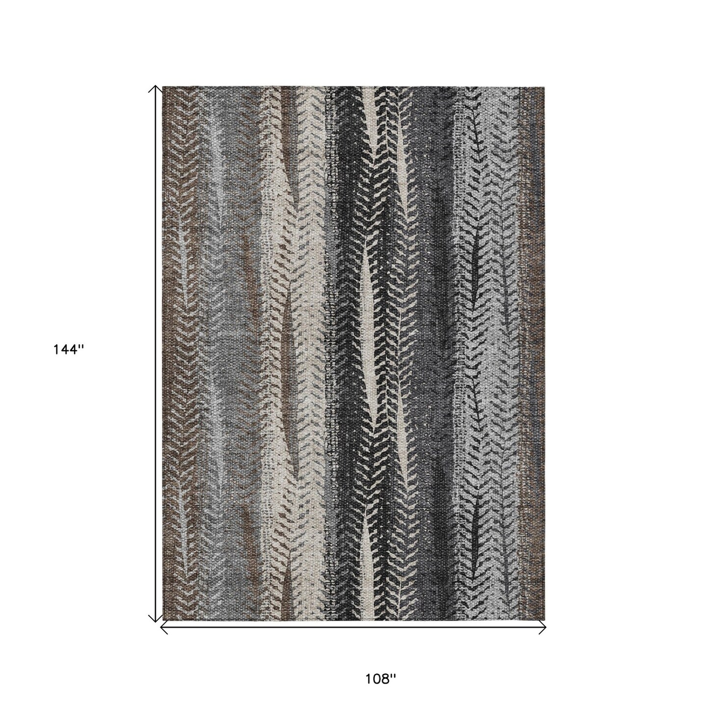 Edge Collections - 9' x 12' - Brown - Washable Botanical Leaves Area Rug for Indoor and Outdoor Use - 1 Piece