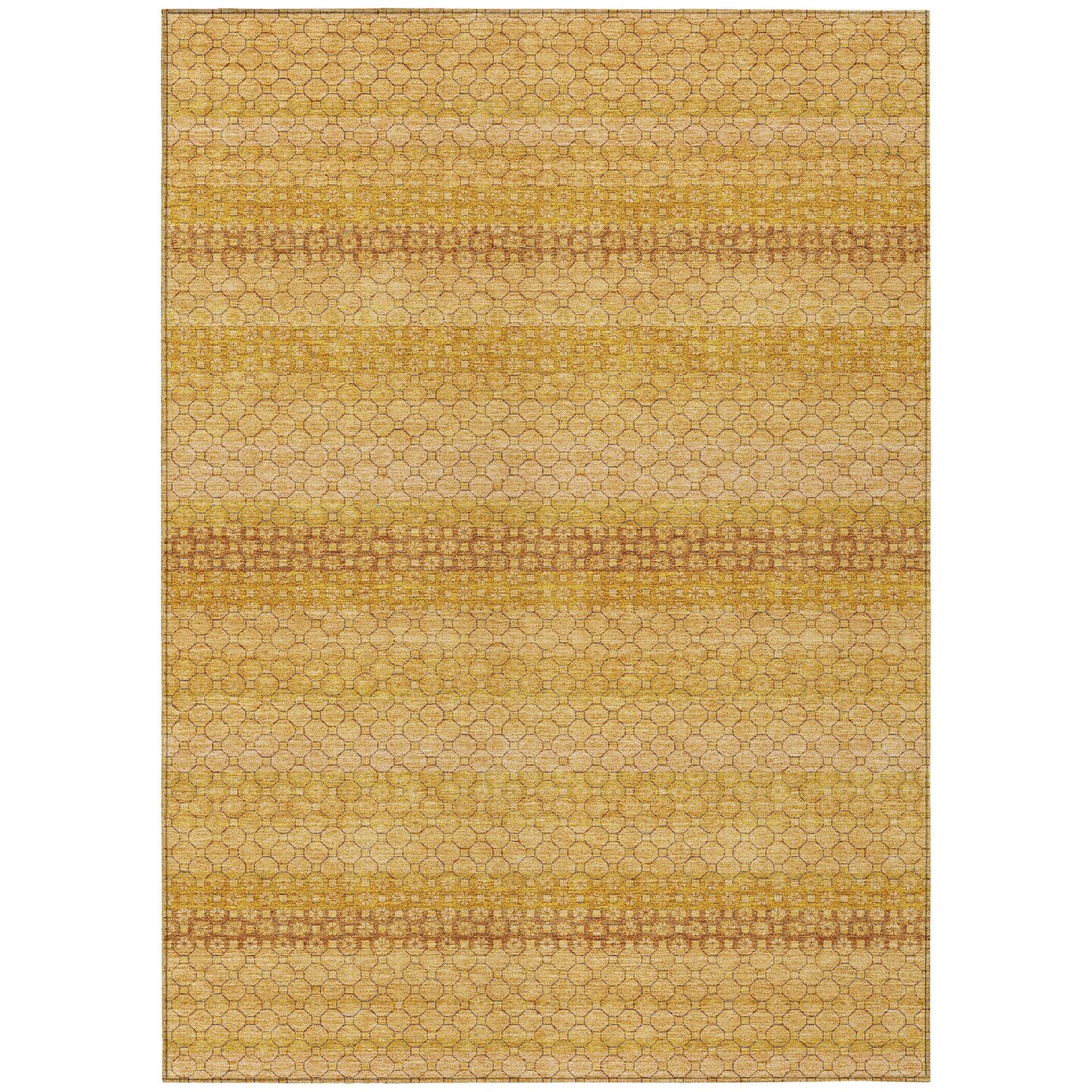 Edge Collections - 9' x 12' - Gold - Striped Washable Indoor Outdoor Area Rug - 1 Piece