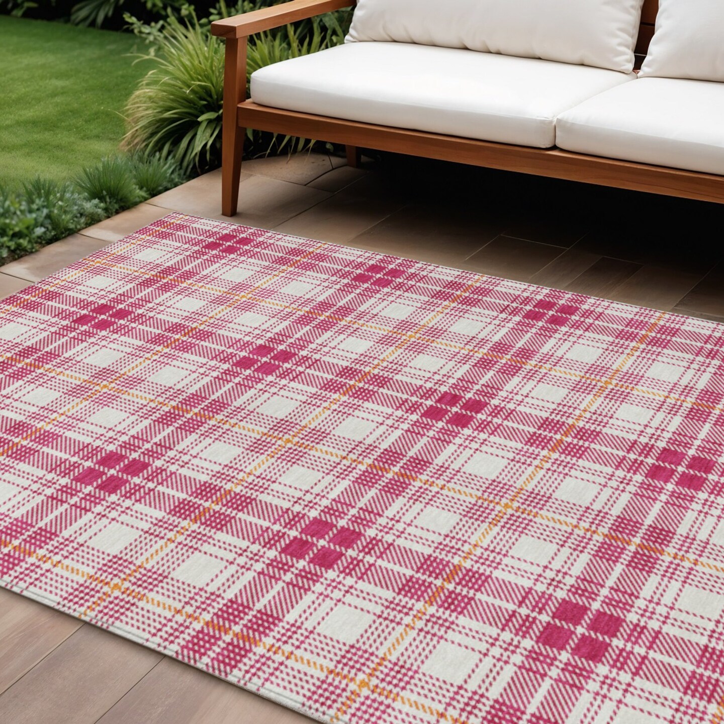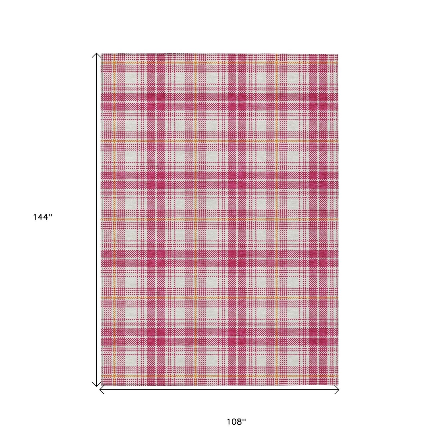 Edge Collections - 9' x 12' - Pink - Plaid Washable Area Rug for Indoor and Outdoor Use - 1 Piece