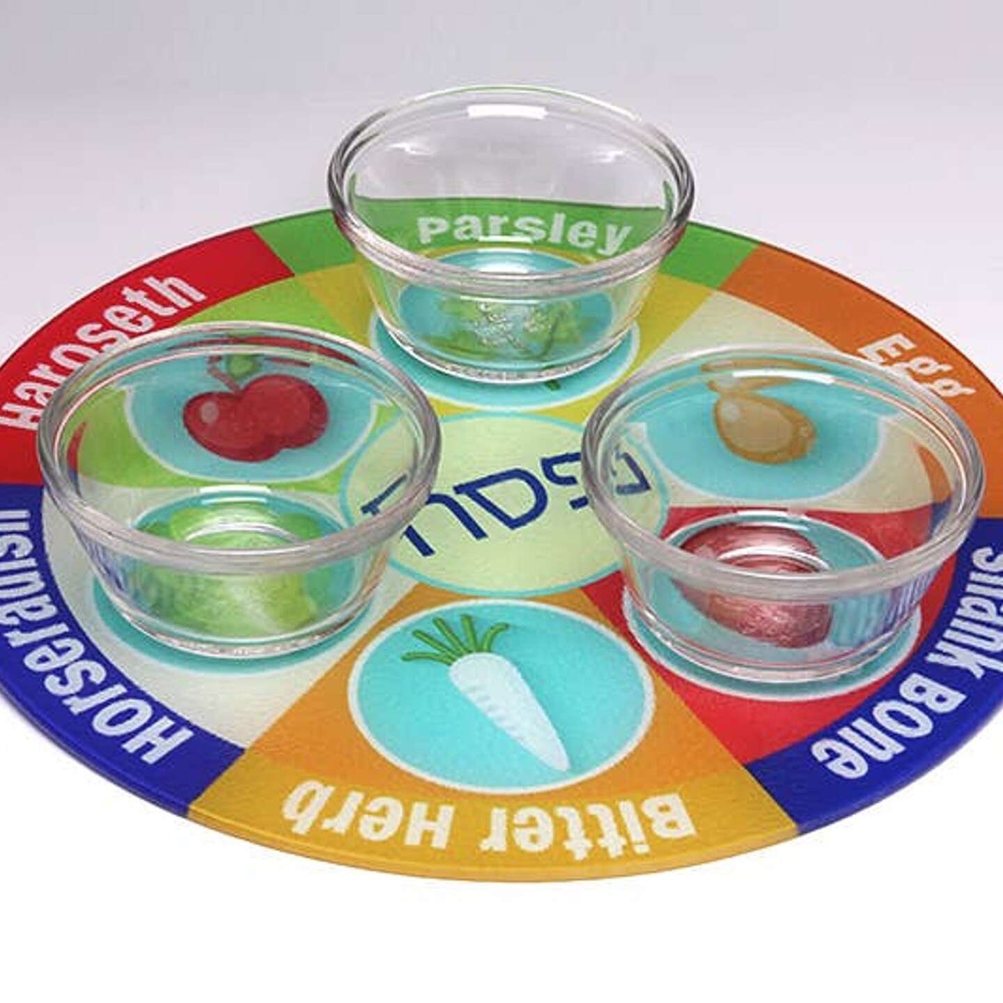 Edge Collections - Multi - Customizable Seder Plate with Glass Bowls - 3 Piece