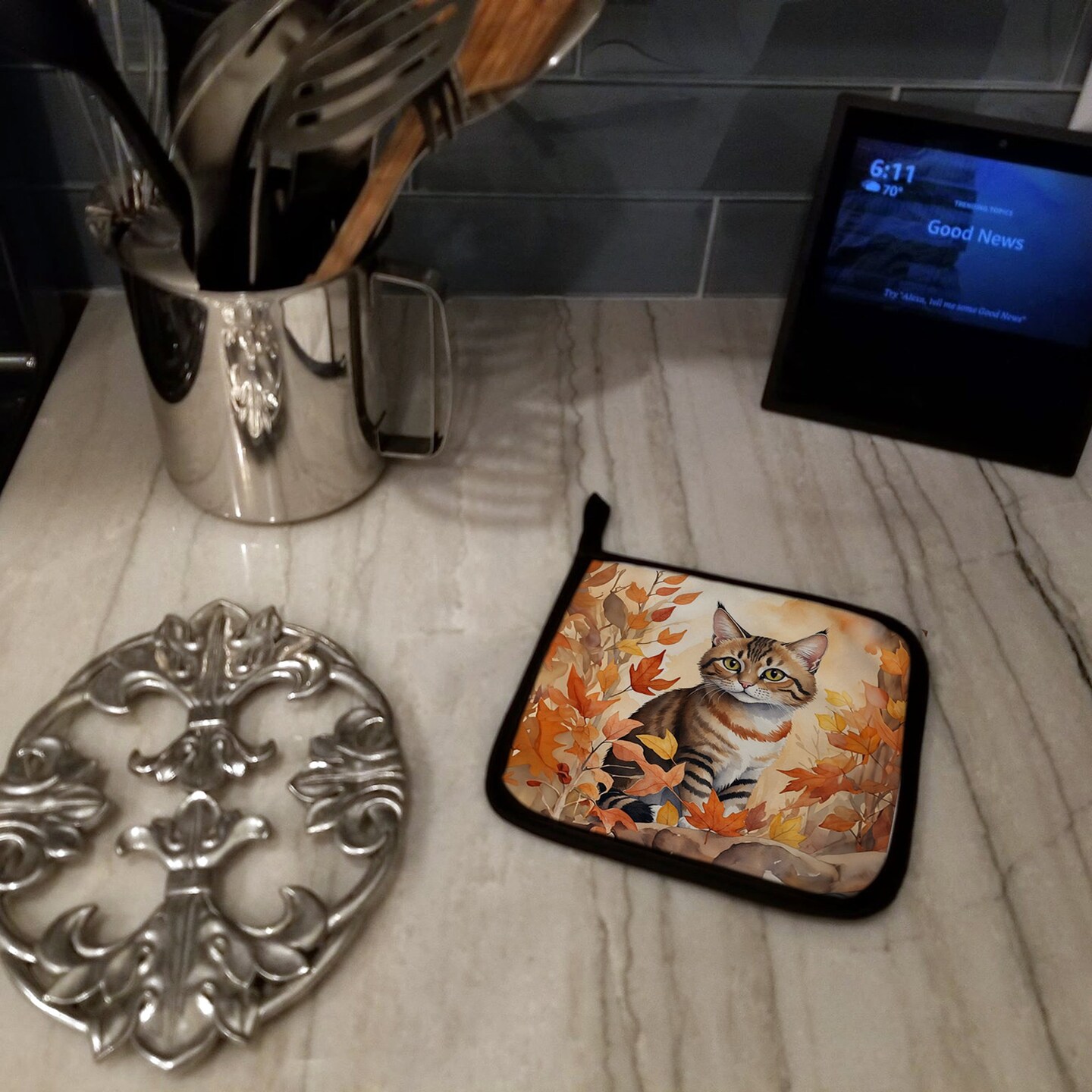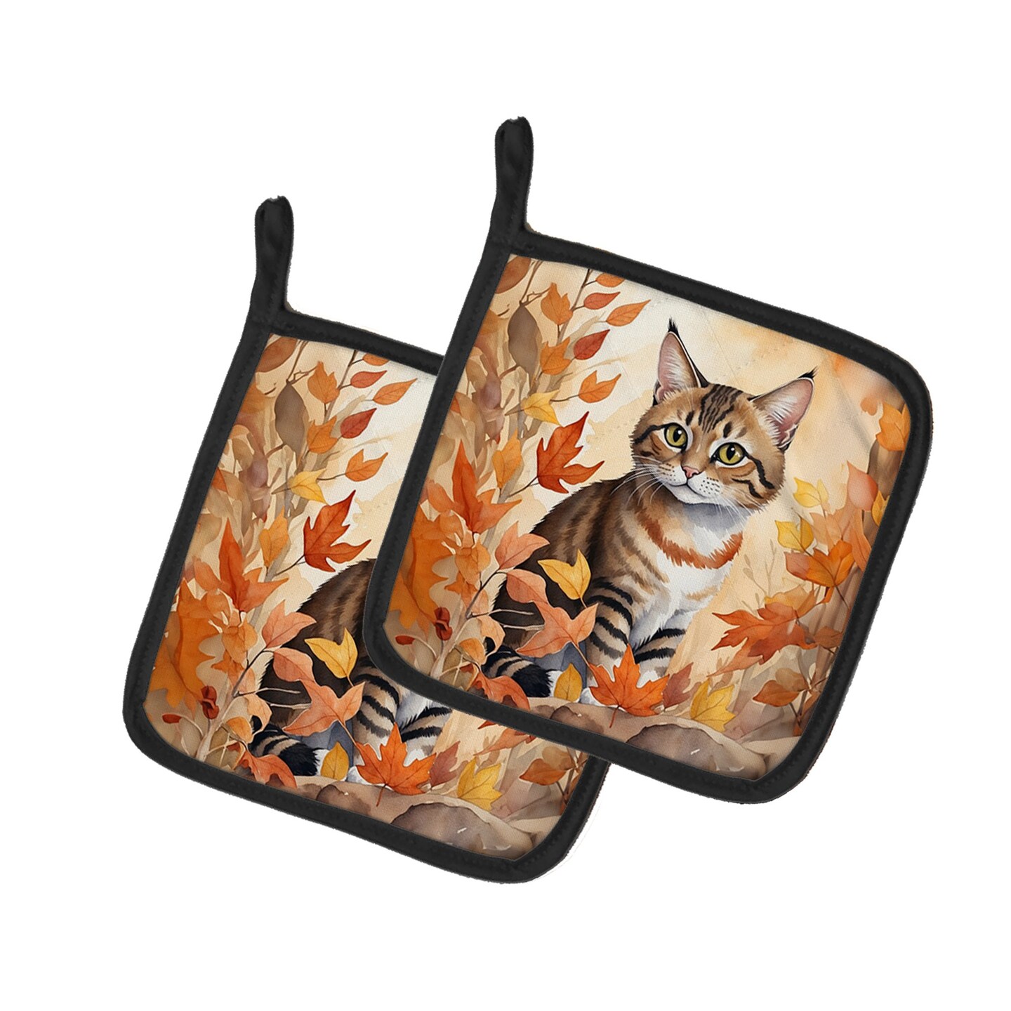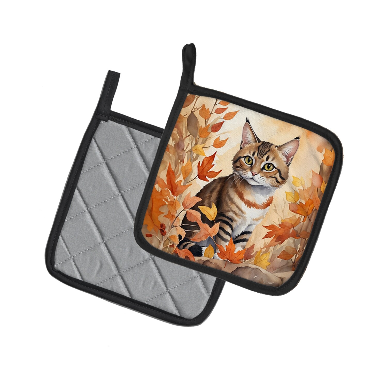 Edge Collections - Multicolor - Cats and Autumn Leaves Pair of Cozy Pot Holders - 2 Piece
