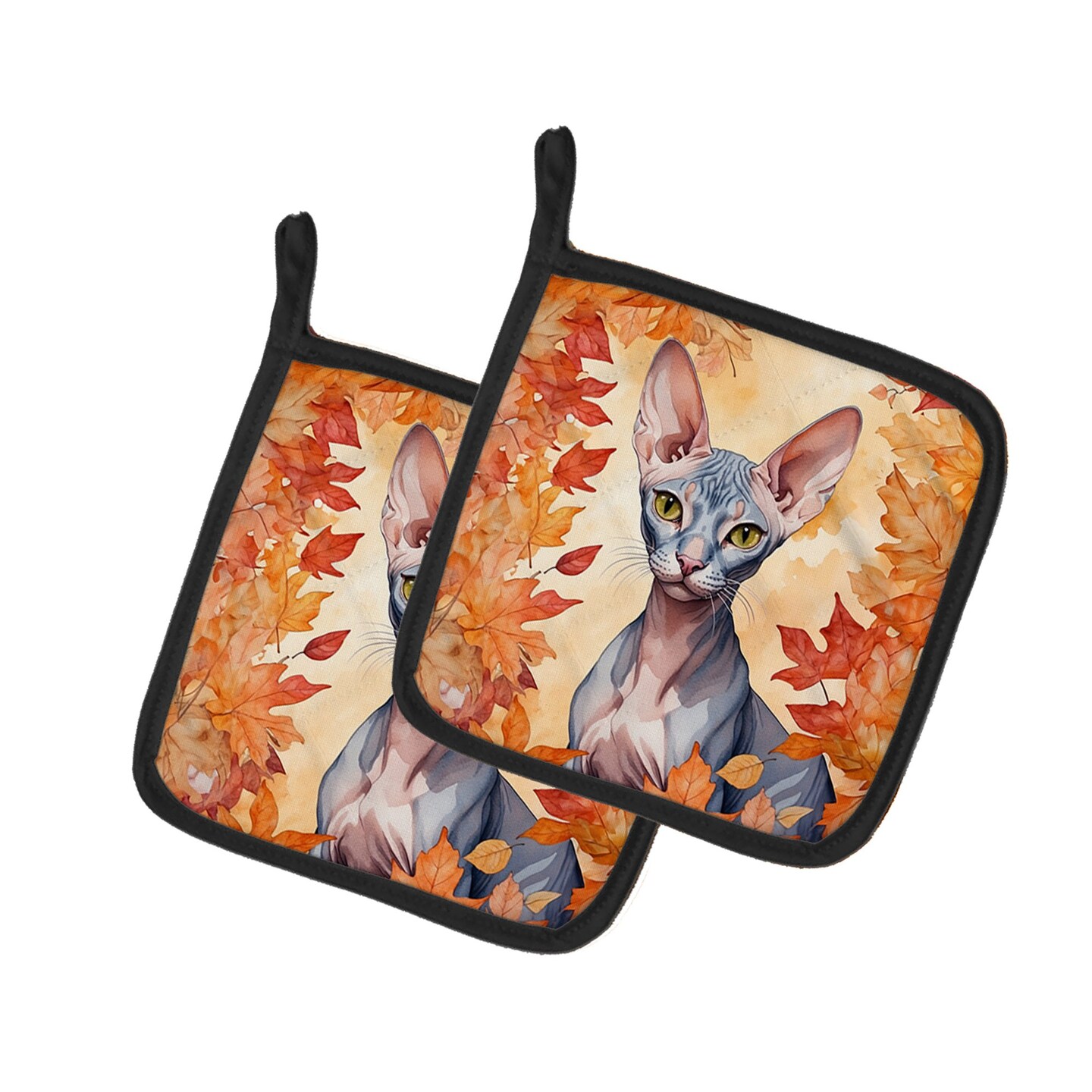 Edge Collections - Multicolor - Cute Fall Cats Pair of Oven Pot Holders - 2 Piece