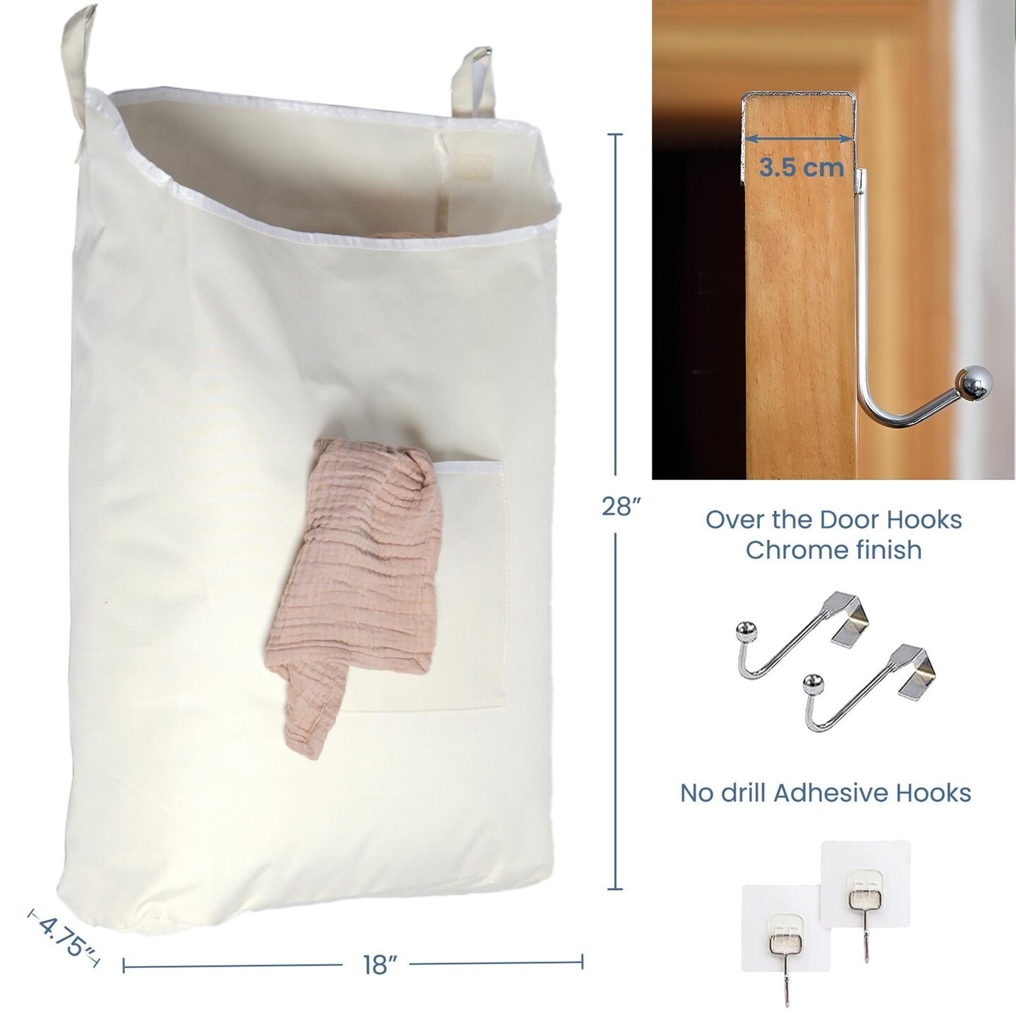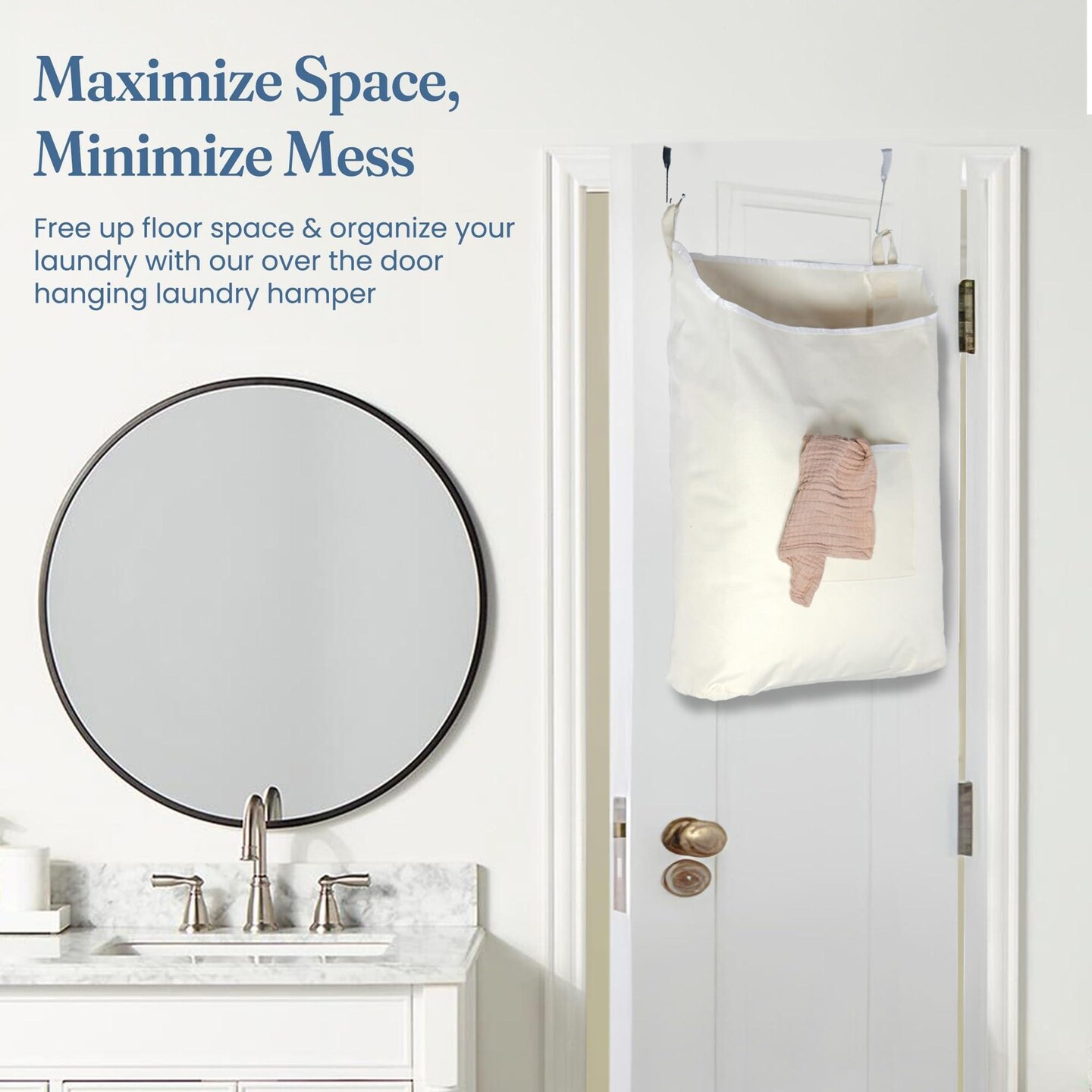 Edge Collections - White - Space-Saving Hanging Laundry Hamper with Zipper - 1 Piece