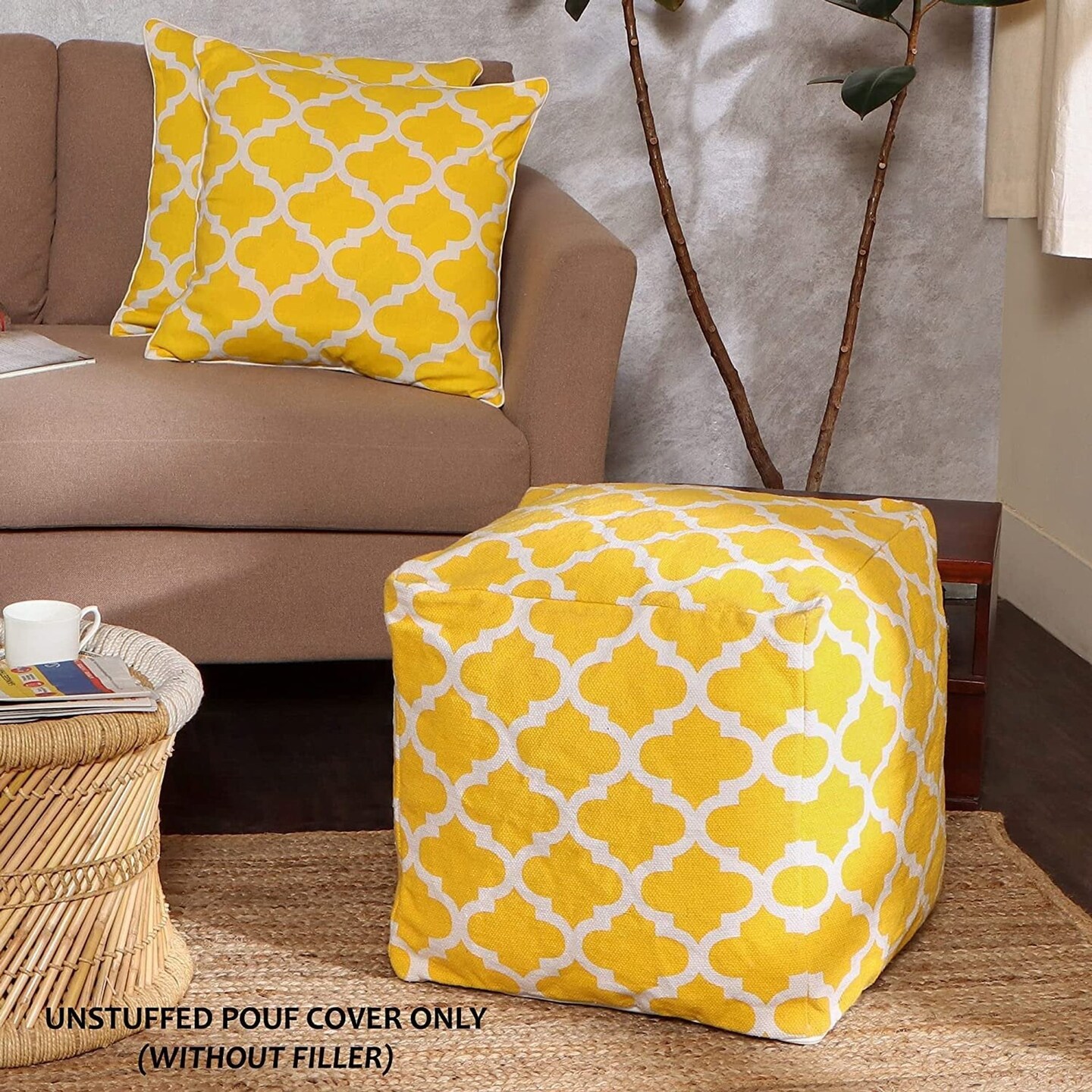 Edge Collections-16" , 18"-Yellow-Handcrafted Decorative Pouf Cover for Versatile Seating-1 pcs