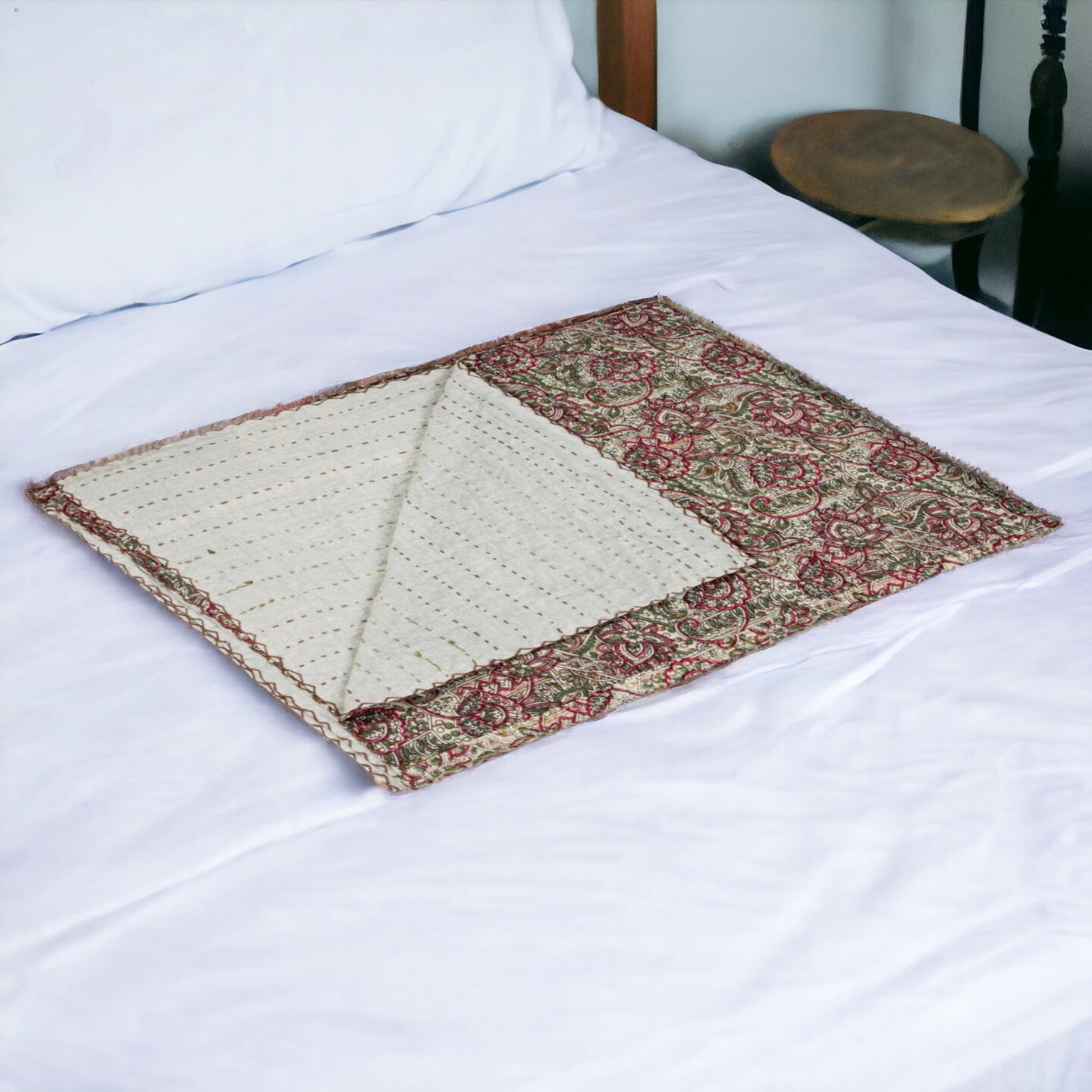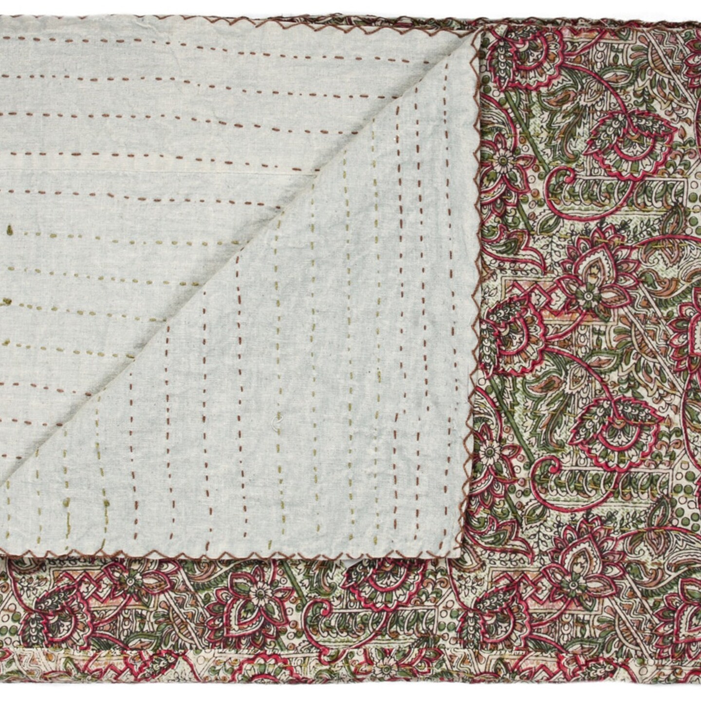 Edge Collections-50" x 70"-Green-Embroidered Kantha Throw Blanket for Cozy Home Accents-1 pcs