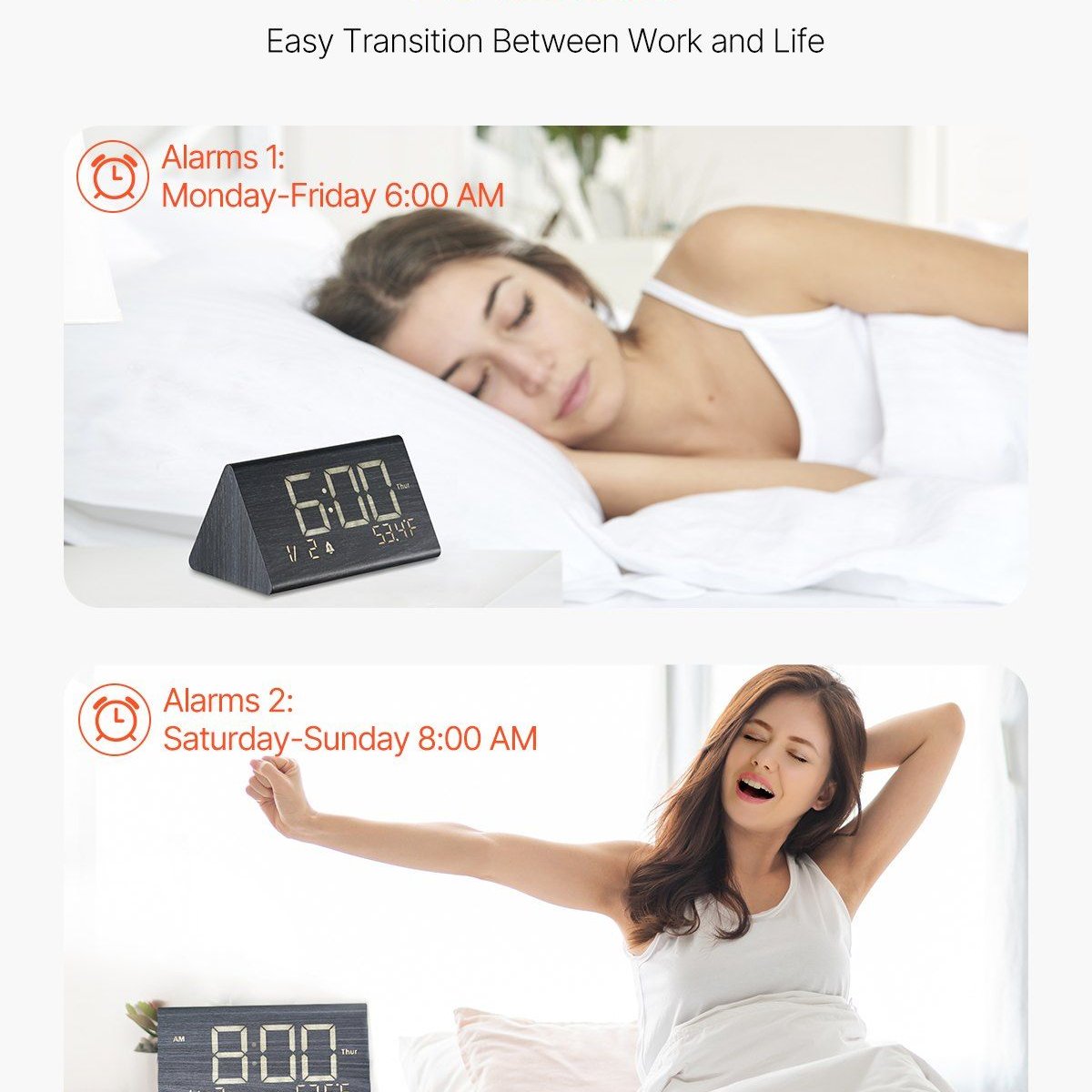 Edge Collections-Black-Dual Alarm Digital Clock with Adjustable Night Light-1 Piece