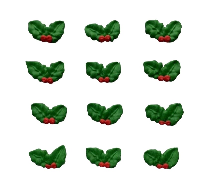 Edible Decorations Tiny Double Holly & Berry 1/2 Inch 12 Count
