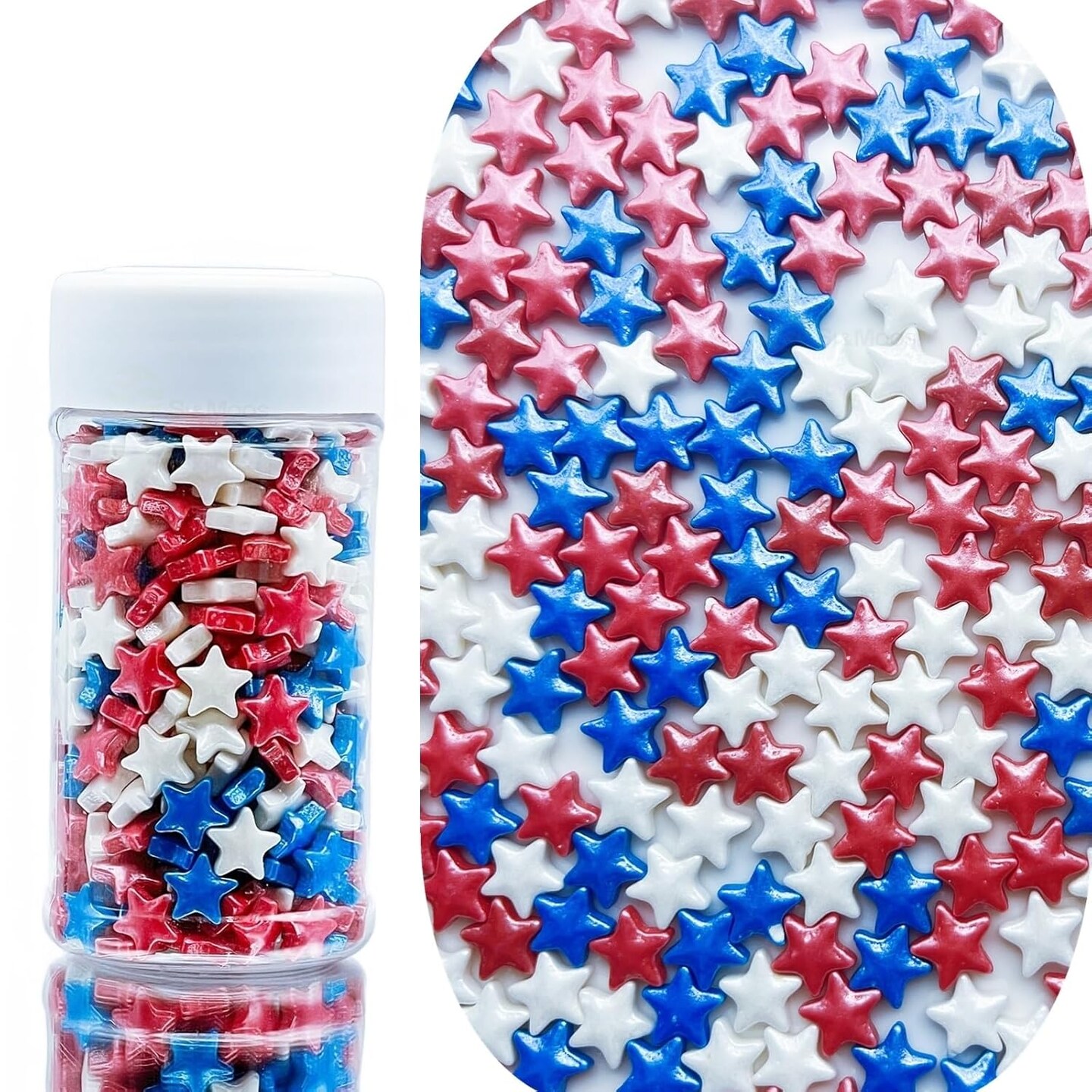 Edible Patriotic Stars for Cake decorating Red White and Blue Sprinkles Fourth of July Sprinkles