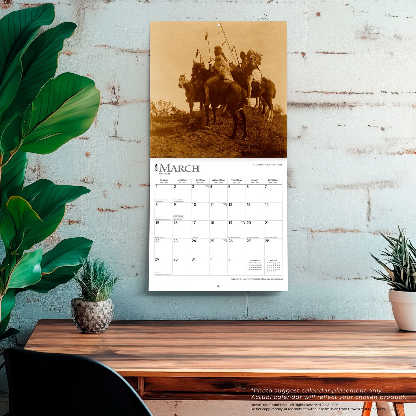 Edward S. Curtis Portraits of Native Americans | 2026 12 x 24 Inch (Hanging) Monthly Square Wall Calendar | Plastic-Free