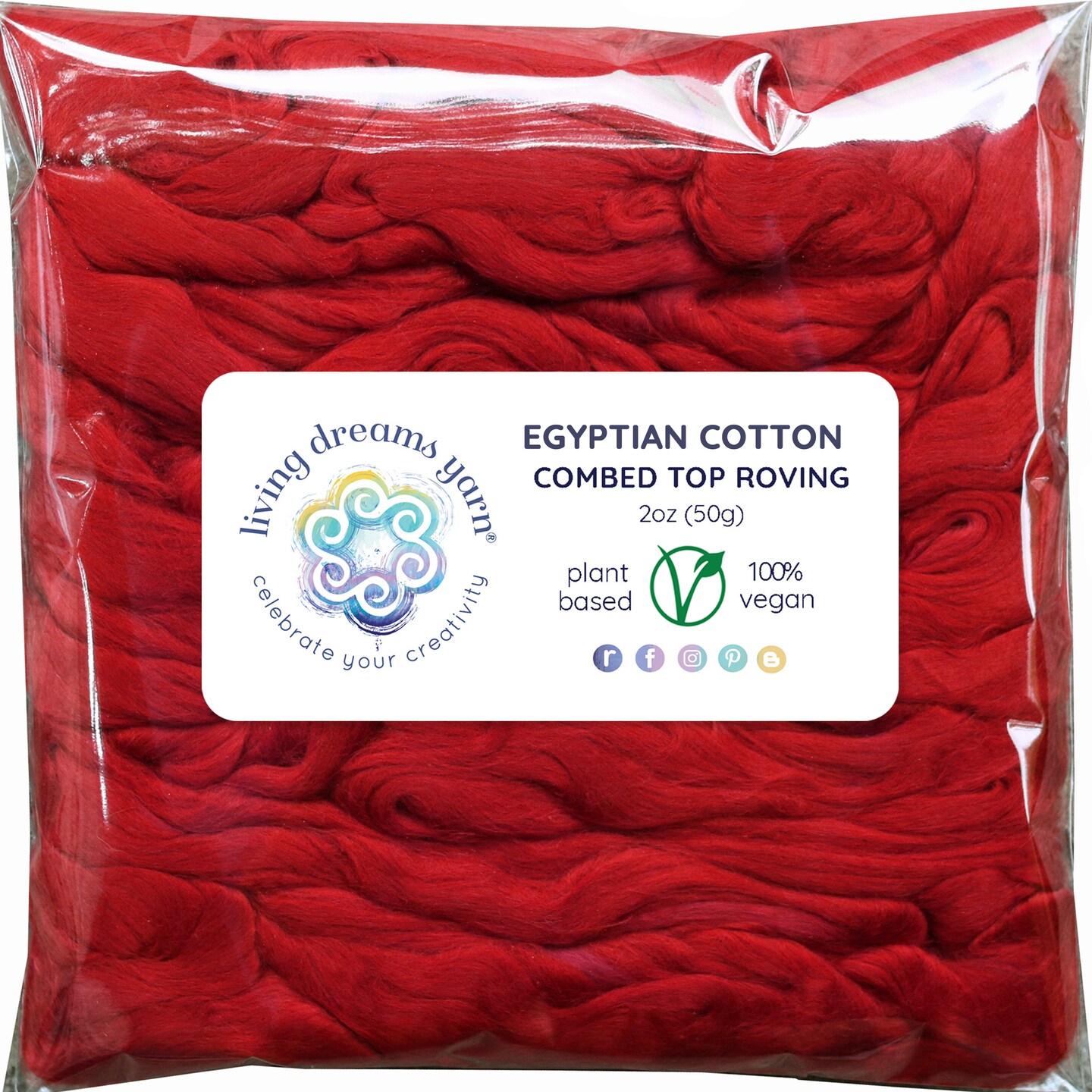 Egyptian Cotton - Beautifully Dyed Vivid Colors, Combed Top Roving for Spinning, Blending, Felting, Weaving.