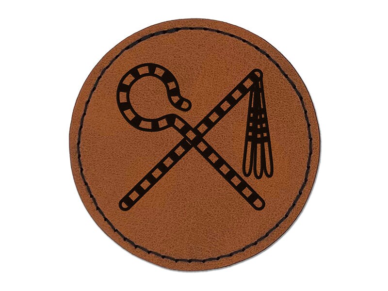 Egyptian Crook and Flail Pharaoh Round Iron-On Engraved Faux Leather Patch Applique - 2.5"