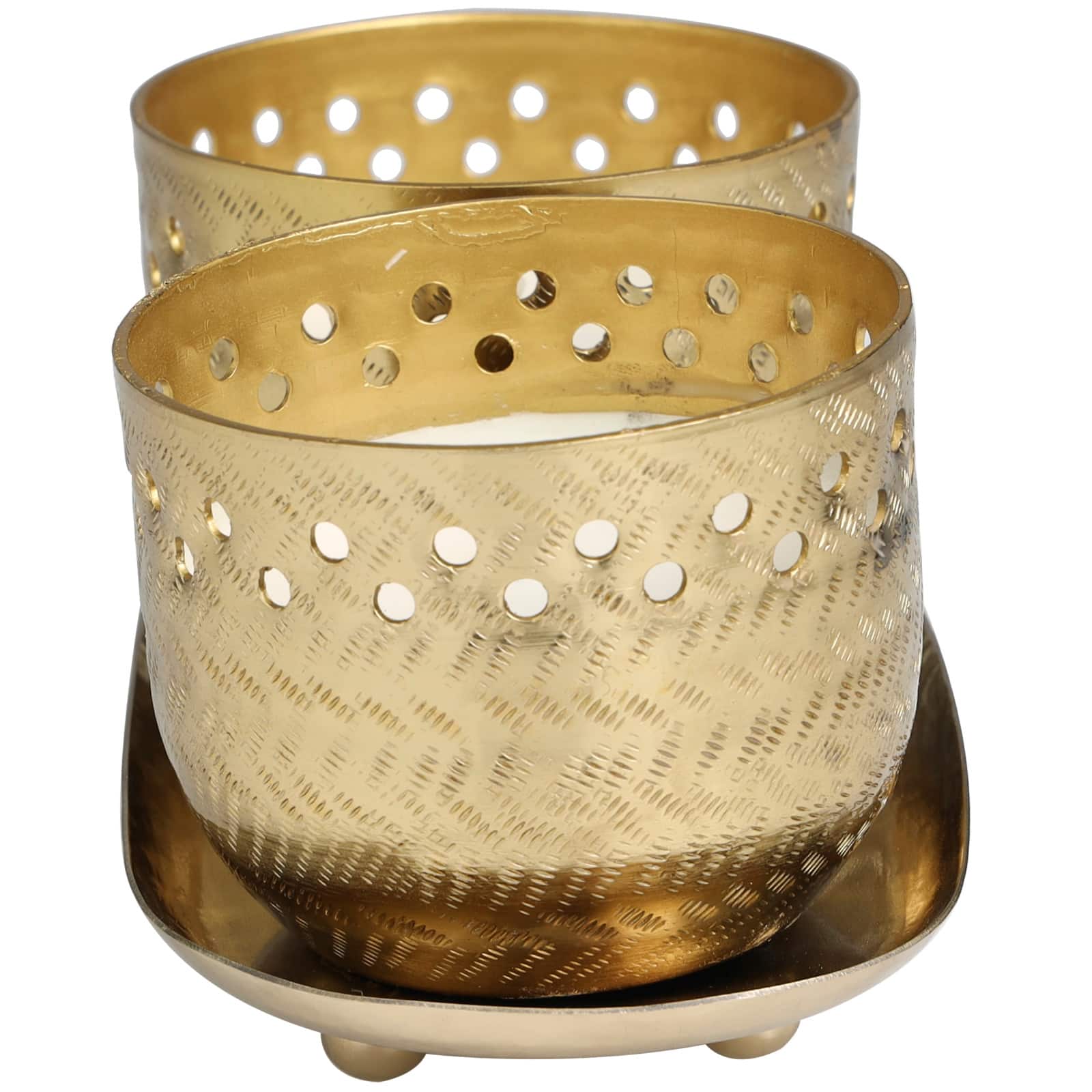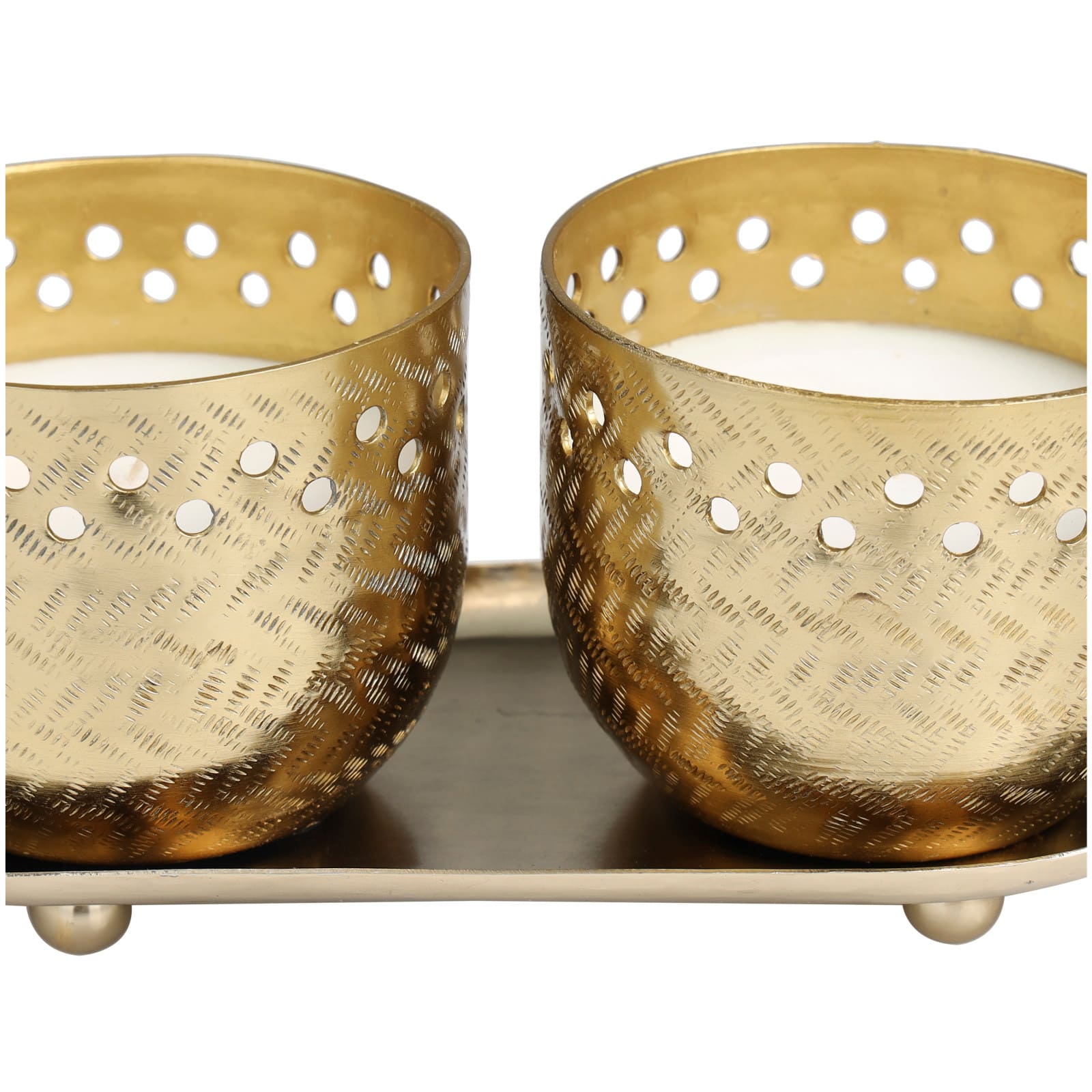 Egyptian Mint Scented Cutout Spotted Candles in Gold Bowls Set
