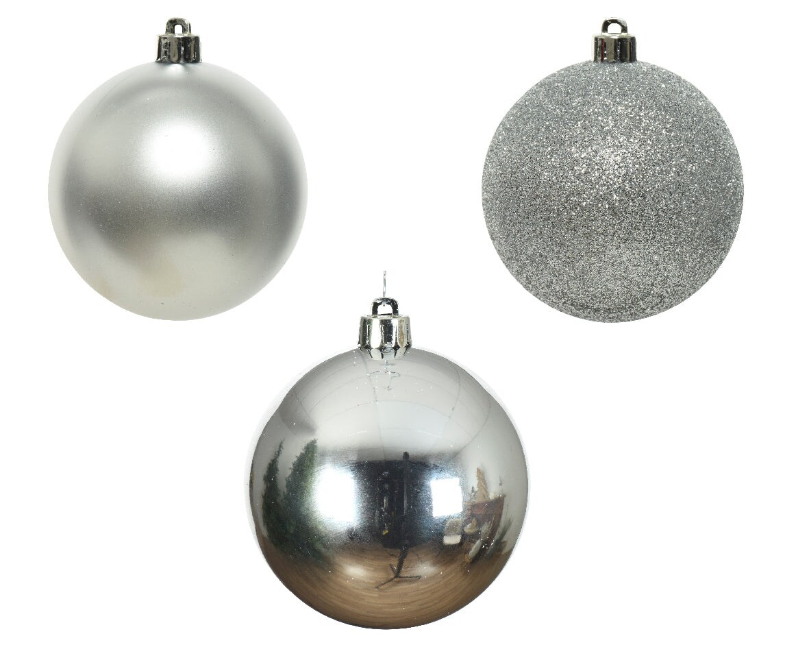 Elegant Assorted Shatterproof Ornaments - Set of 10 - Silver
