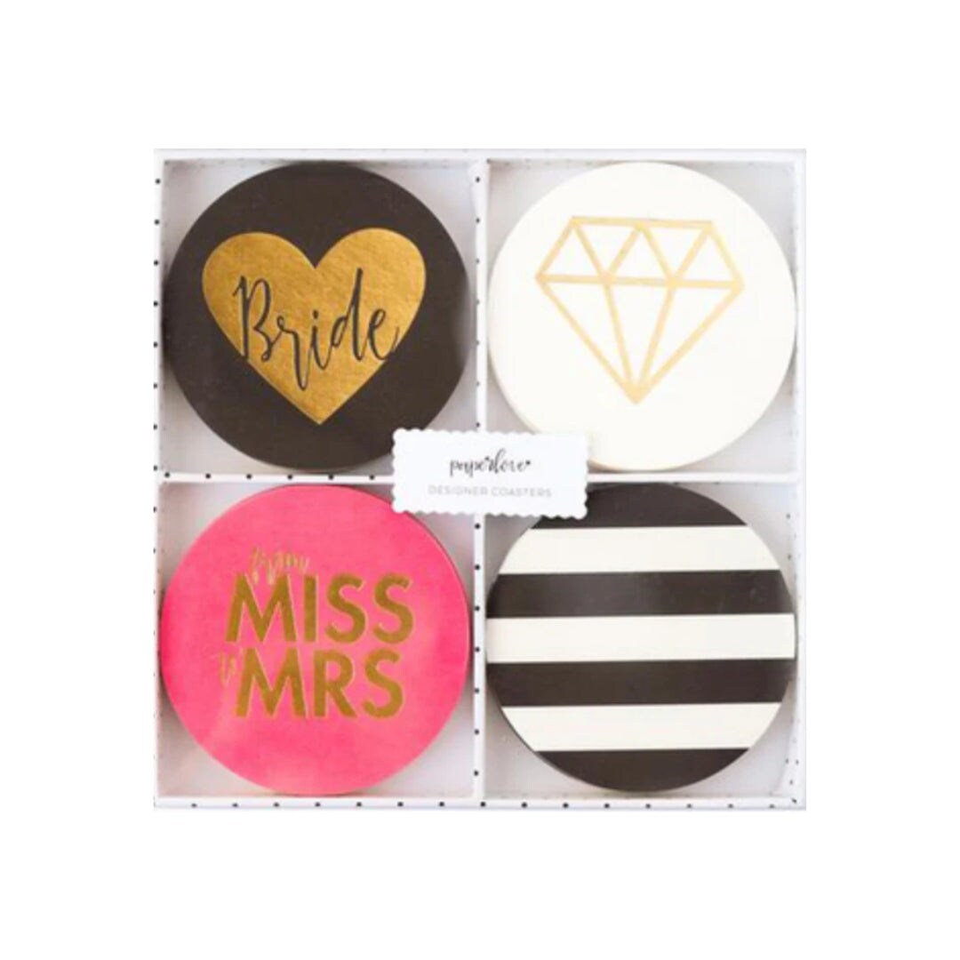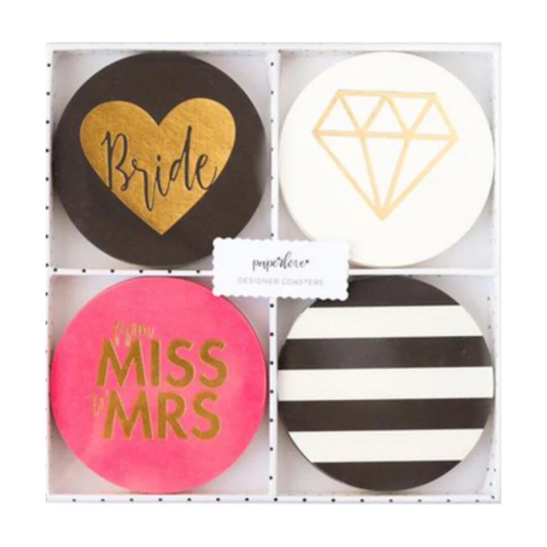 Elegant Bride to Be Coasters – Gold Foil Decorations for Bachelorette Party & Bridal Shower Celebrations