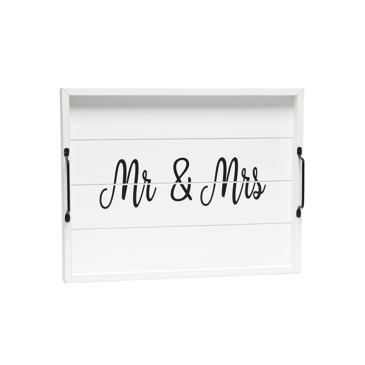 Elegant Designs Decorative Wood Serving Tray With Handles, 15.50" x 12", "Mr. and Mrs."