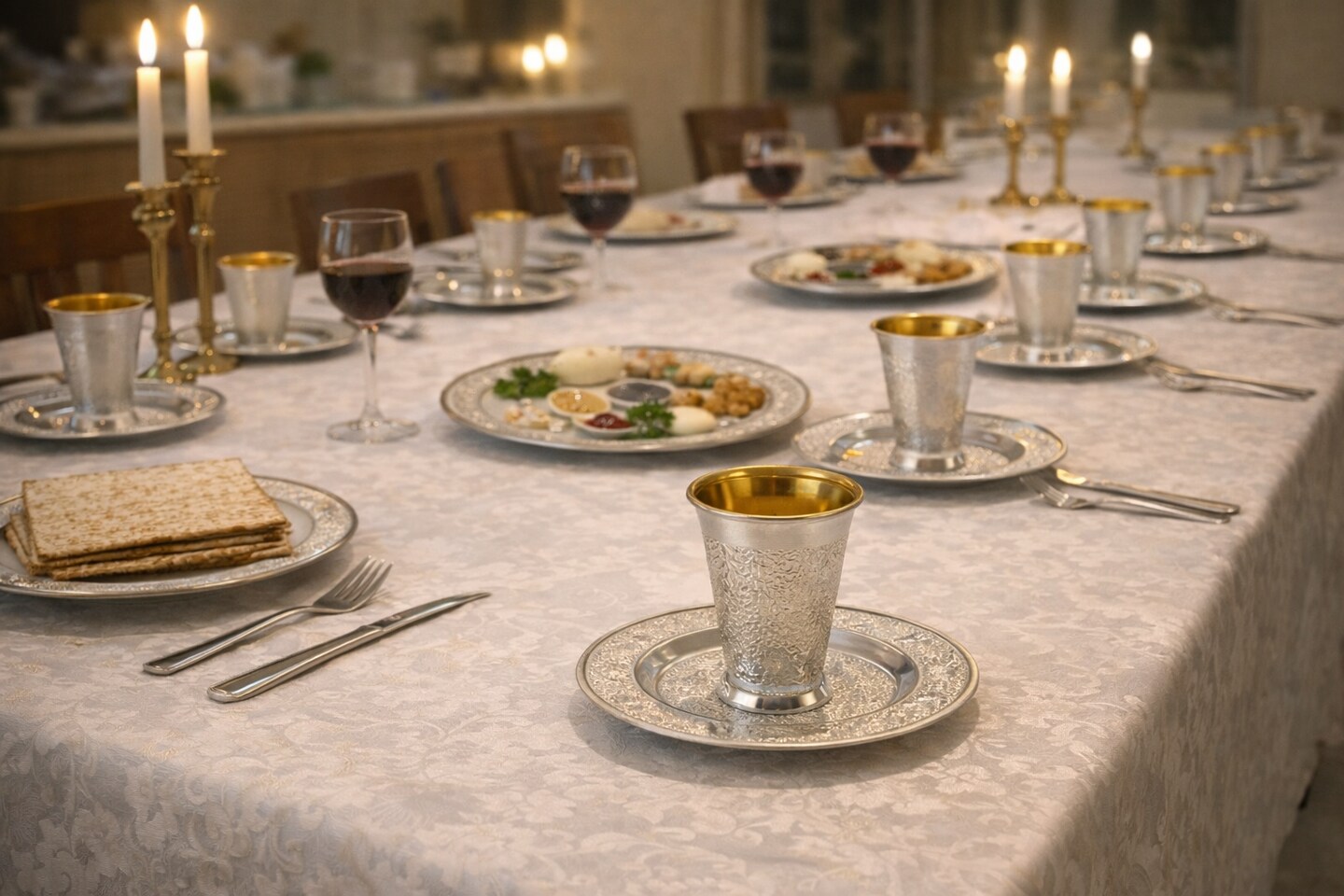 Elegant Plastic Kiddush Cup & Tray Set – 5.5 oz Silver & Gold Design – 5 Cups with 5 Matching Trays for Passover & Shabbat