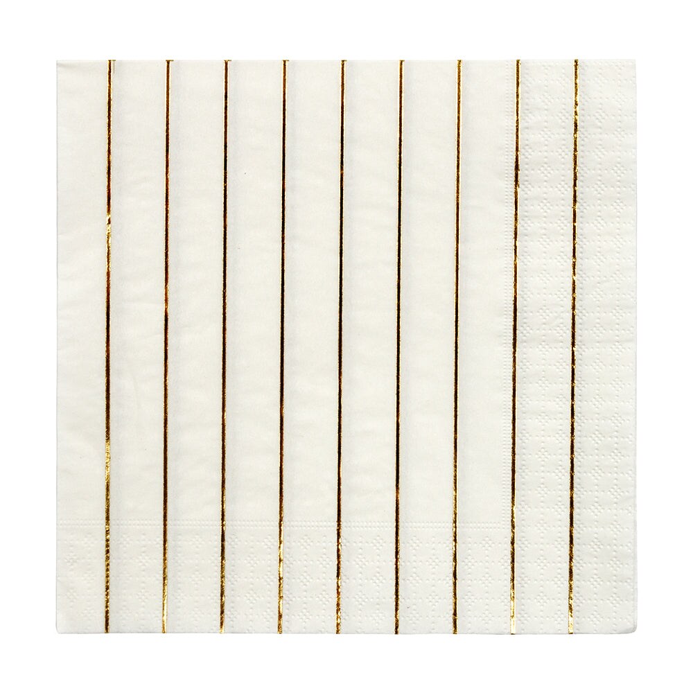Elegant White Napkins with Gold Metallic Stripes – 16-Pack Premium Thick Paper for Parties & Events