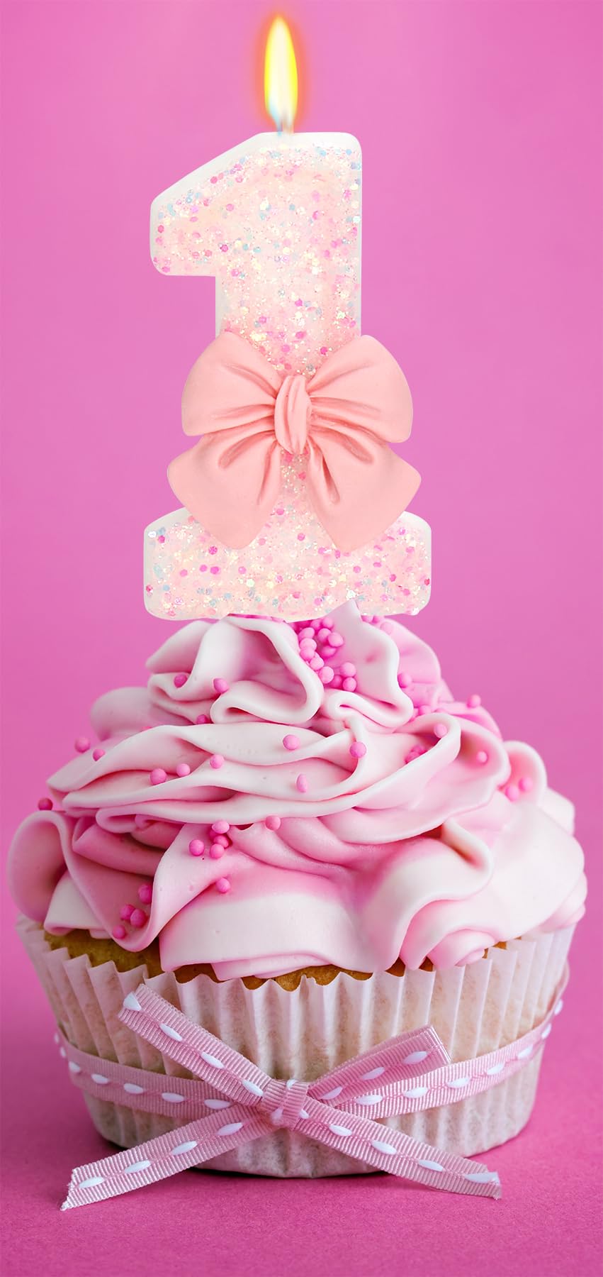 ElekFX Birthday Candle for Cake, 1 Candle - Pink Glitter with Bowknot, 2.76 inch Happy Birthday Candle, Cake Topper Decoration for 1 Year Old Birthday Party (Number 1)